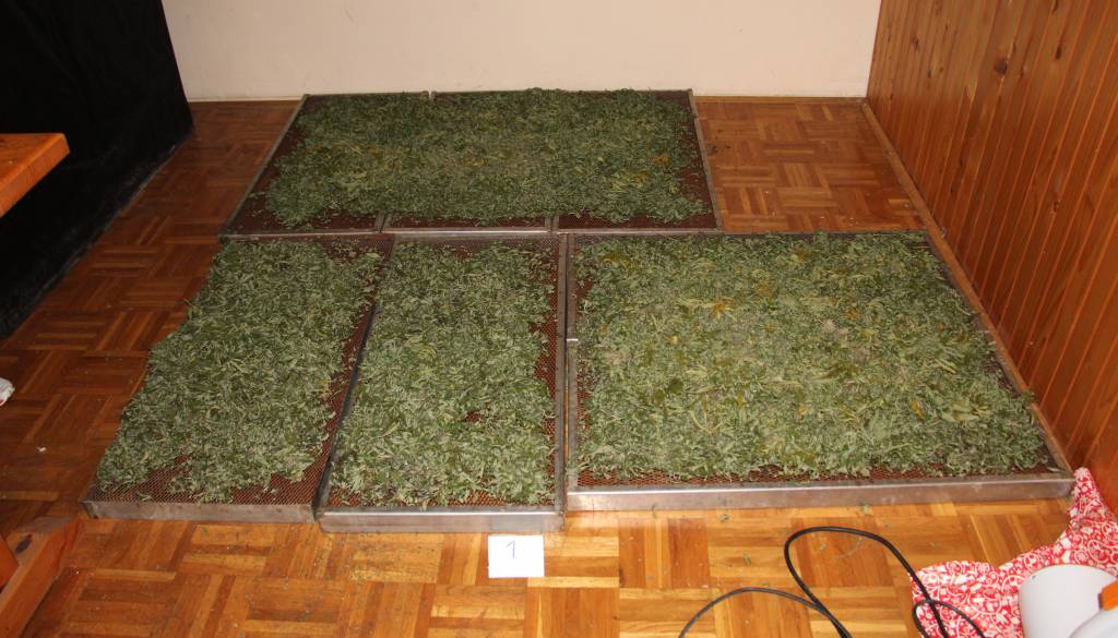 Zraven tega so našli in zasegli pripomočke za gojenje prepovedane droge (ventilatorji, grelec, karbonski filter zraka, vlažilec zraka in LED luči).