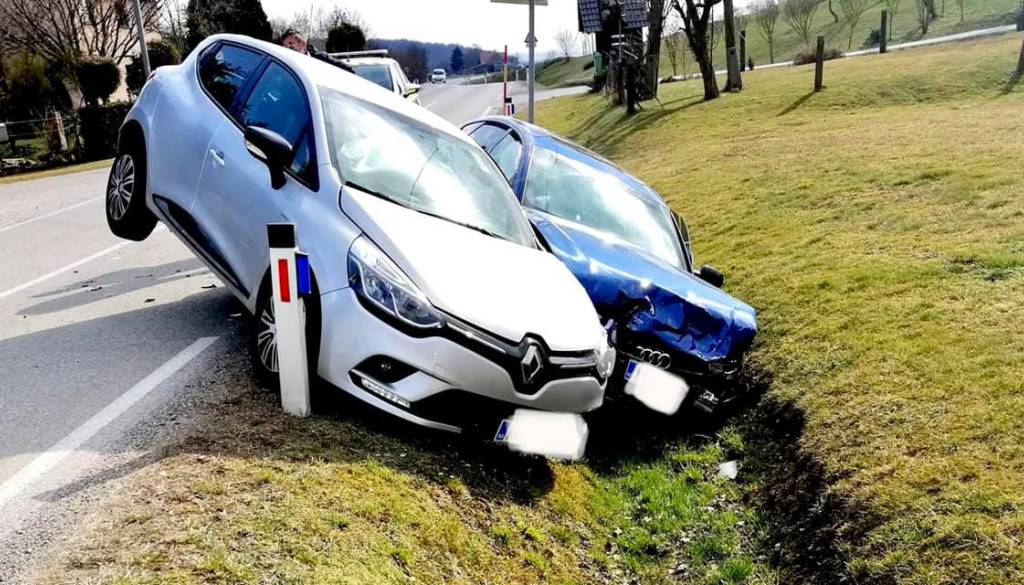 V naselju Hlaponci v občini Juršinci sta ob 14.12 trčili osebni vozili.