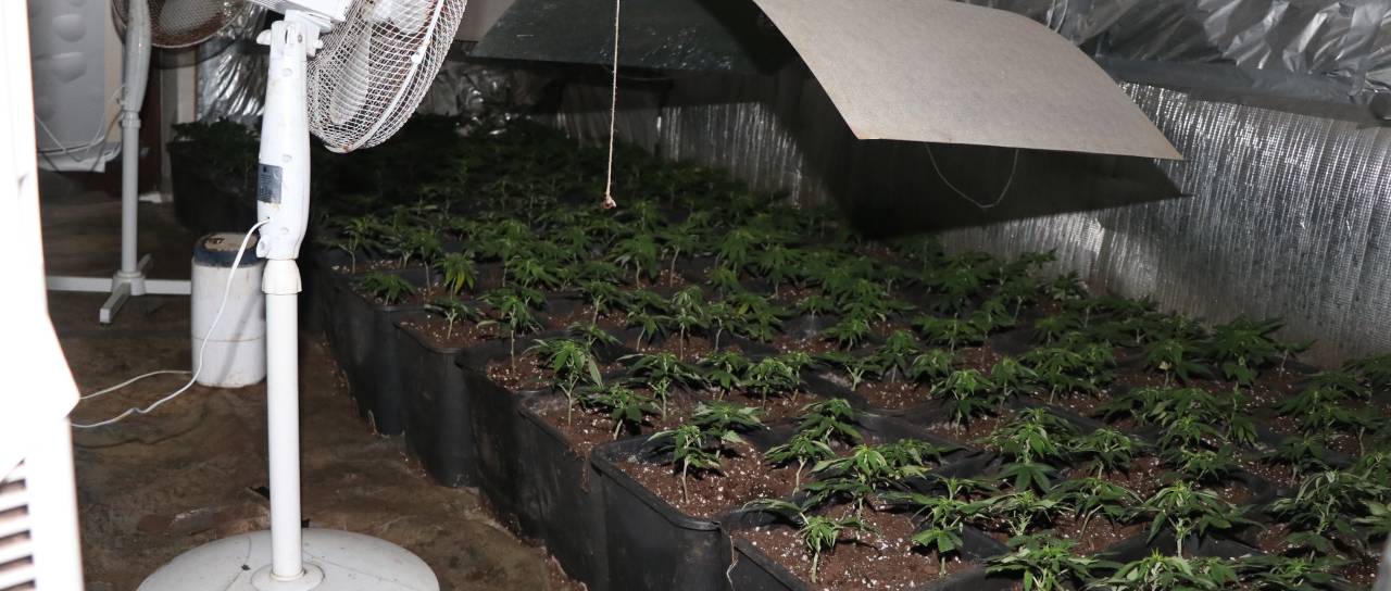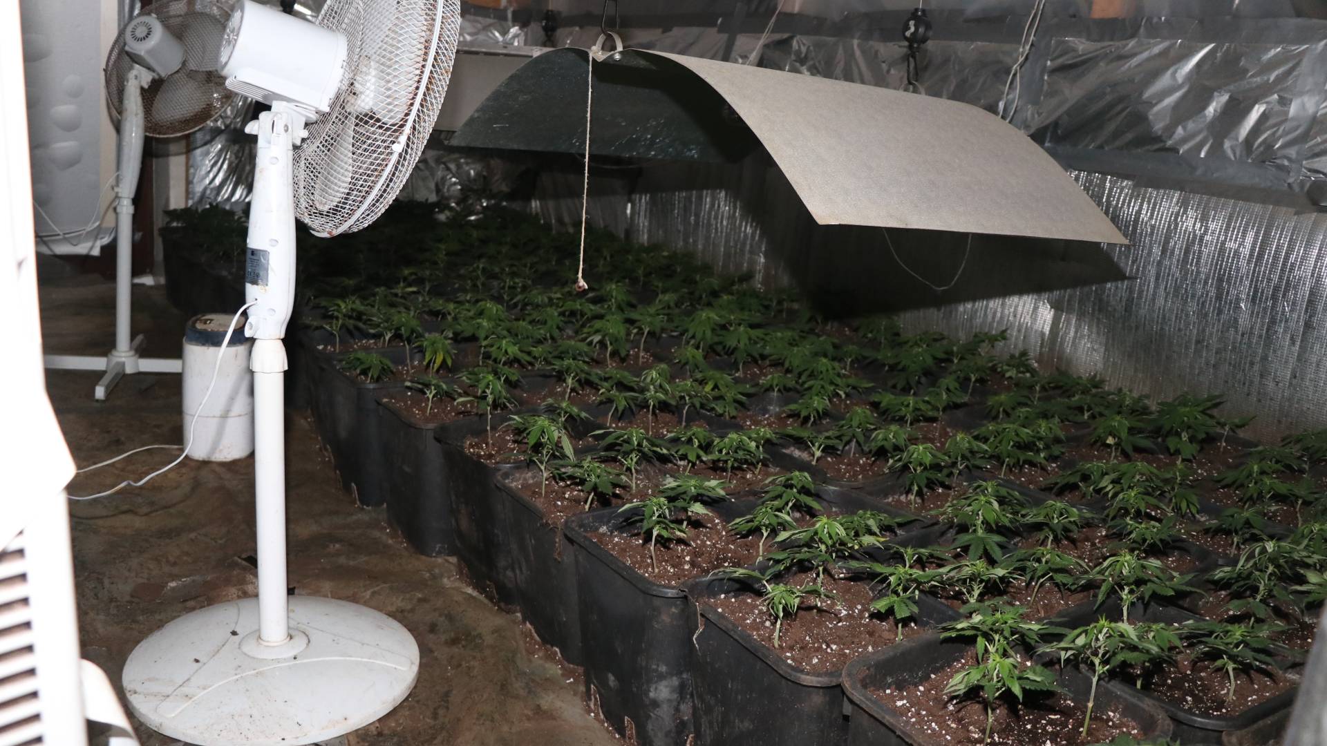 V prostorih namenjenih gojenju konoplje so našli 1200 sadik konoplje, visoke med 10 in 45 centimetrov, ki so bile nasajene v lončkih.