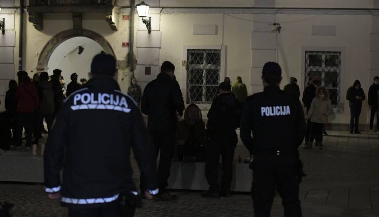 Ob 21. uri je včeraj v veljavo stopila omejitev gibanja med 21. in 6. uro. Na Glavnem trgu v Mariboru se je zbralo več deset protestnikov, ki so med drugim vzklikali, da policijska ura ni ustavna. Kako pa je bilo v Ljubljani?