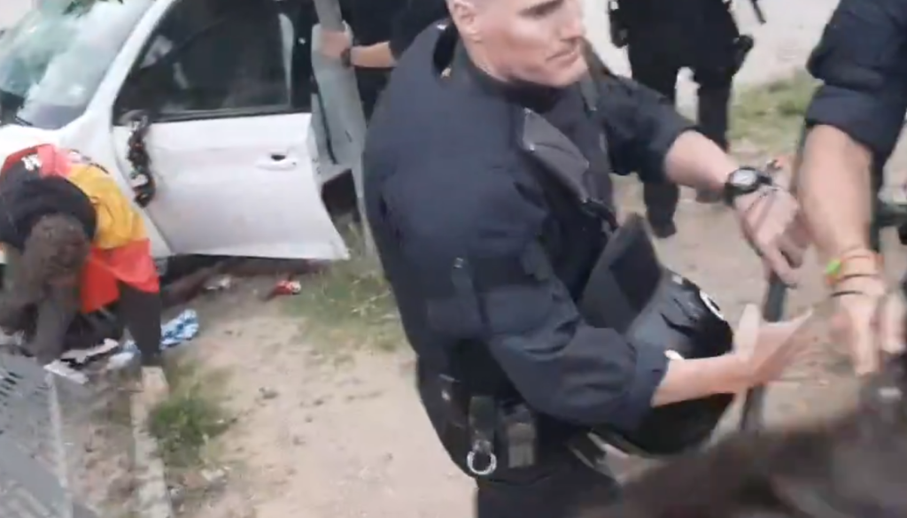 Voznica je avtomobil zapeljala v območje, kjer je bila vožnja za vozila prepovedana. Nato je malo pospešila, kar je čakajoče razjezilo in obstopili so avtomobil. Policisti pa so skušali pomiriti kaos.