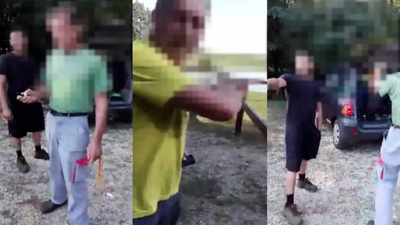 Iz videoposnetka, ki je zaokrožil po spletu je razvidno, da je eden od vpletenih v spor z mačeto v roki zagrozil z zamahom. Mačeto je nato pospravil v avtomobil.