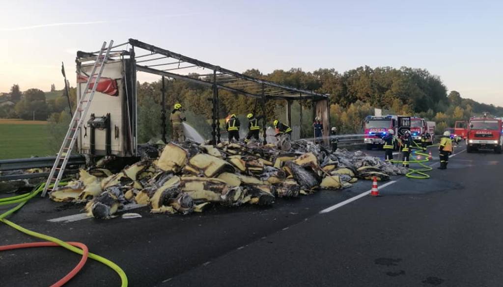 Na avtocesti med priključkom Lenart in tunelom Močna v smeri Maribora v občini Lenart je včeraj, okoli 18.29, zagorela izolacija v rolah na prikolici tovornjaka.