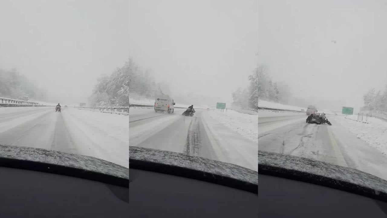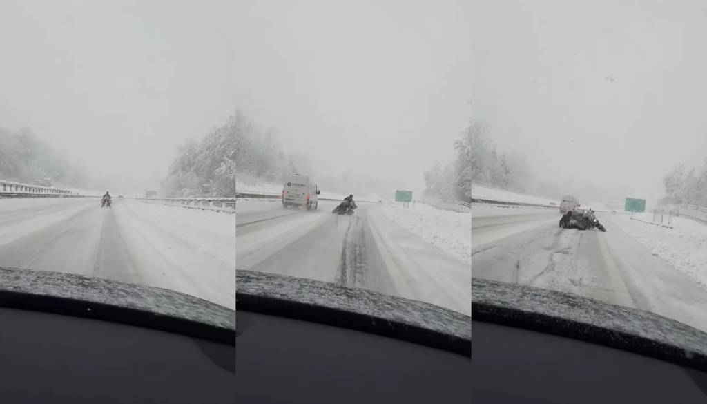 Vozniki na avtocesti so naleteli na nenavaden prizor. Ob povečanem sneženju se je na avtocesto odpravil voznik motornega kolesa, ki ga nevzdržne razmere na cesti najprej niso motile. Vendar je kmalu obžaloval svojo odločitev.
