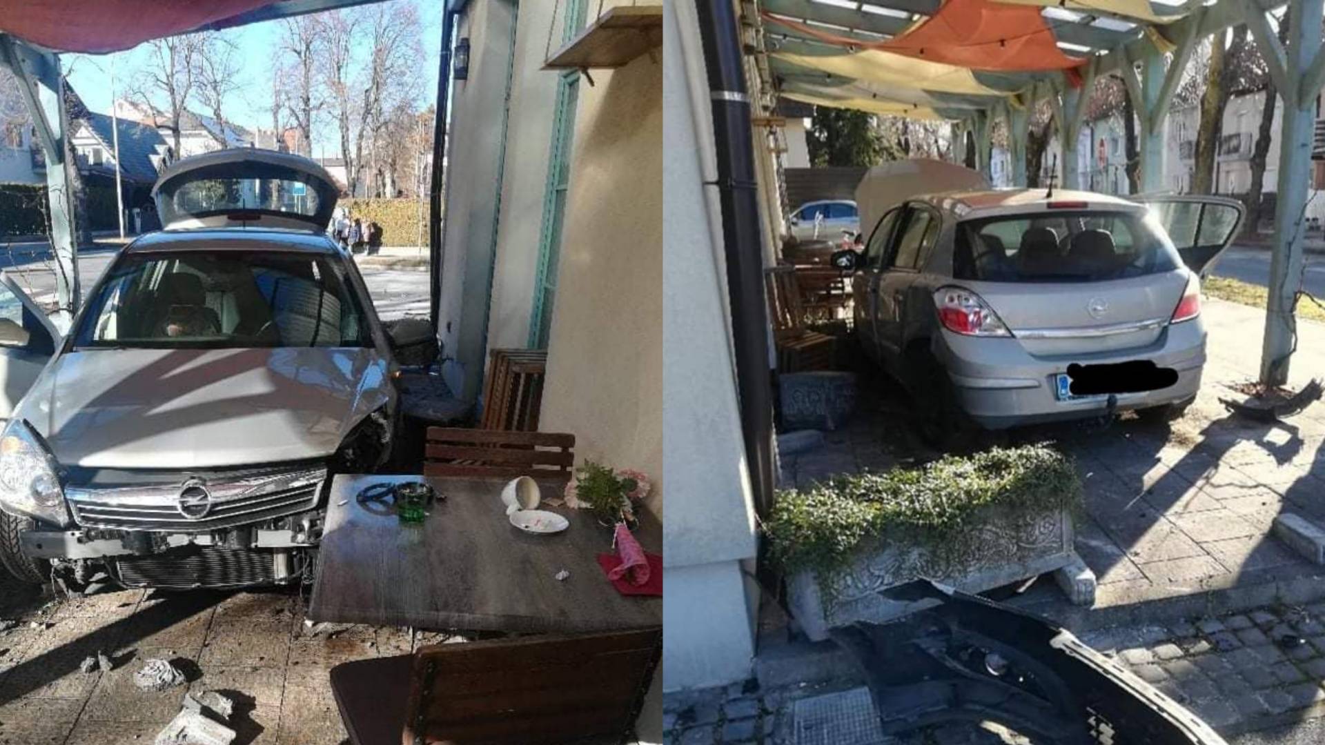 Nesreča pa bi se lahko hitro končala tragično. Eno vozilo je namreč pristalo na terasi gostinskega lokala.