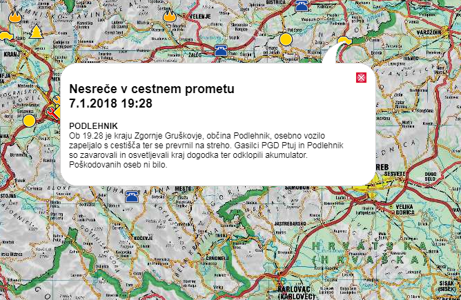 Včeraj okoli 19.30 je v kraju Zgornje Gruškovje, v občini Podlehnik prišlo do prometne nesreče. Osebno vozilo je zapeljalo s cestišča ter se prevrnilo na cesto. Na srečo se nobena oseba ni poškodovala.