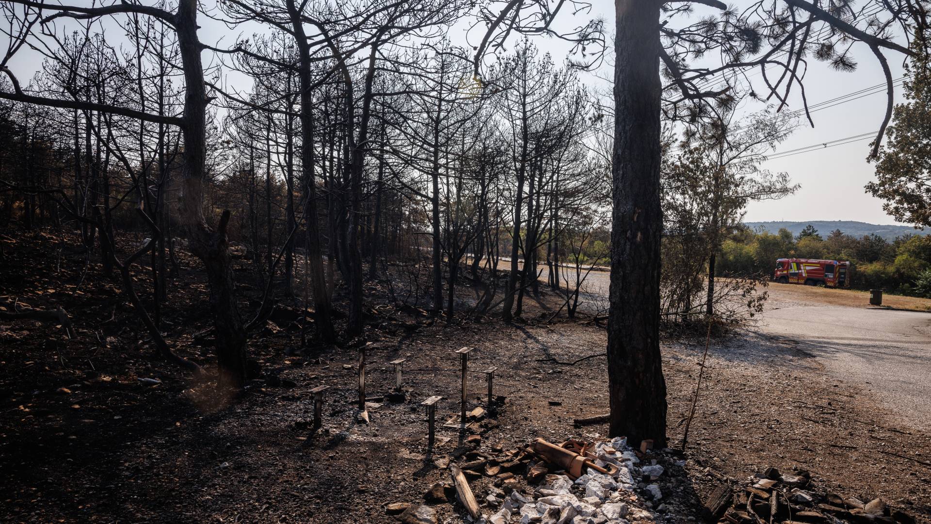 Policisti in kriminalisti so danes opravili ogled kraja požara pri Komnu ter zbrali obvestila in dokaze zaradi suma, da bi lahko bil požar posledica načrtnega požiga.