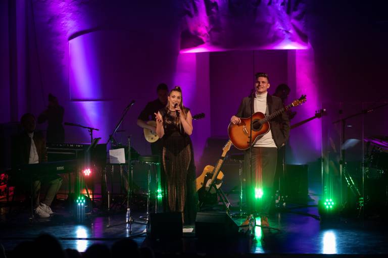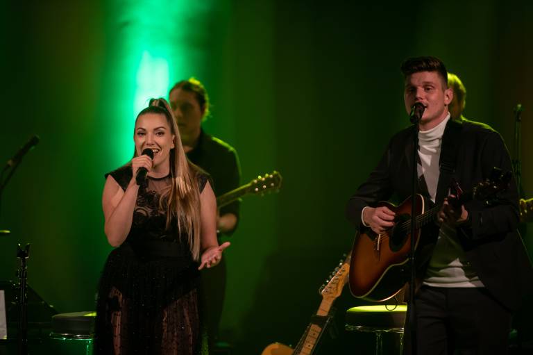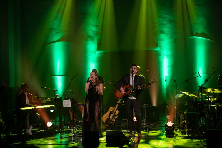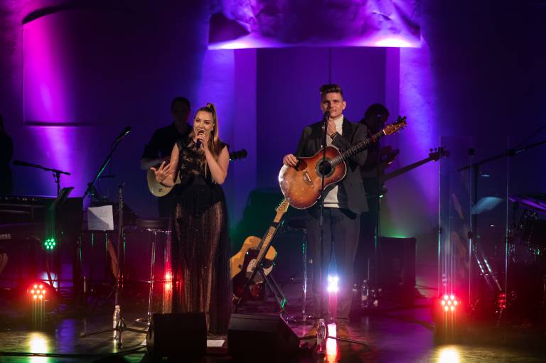 Dva večera zapored so obiskovalci v Dominikanskem samostanu uživali ob prijetni glasbi dueta Uroš in Tjaša z bandom.