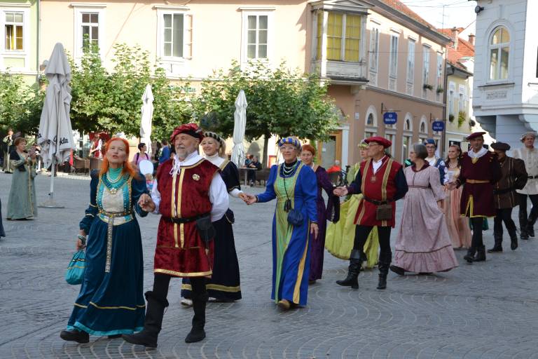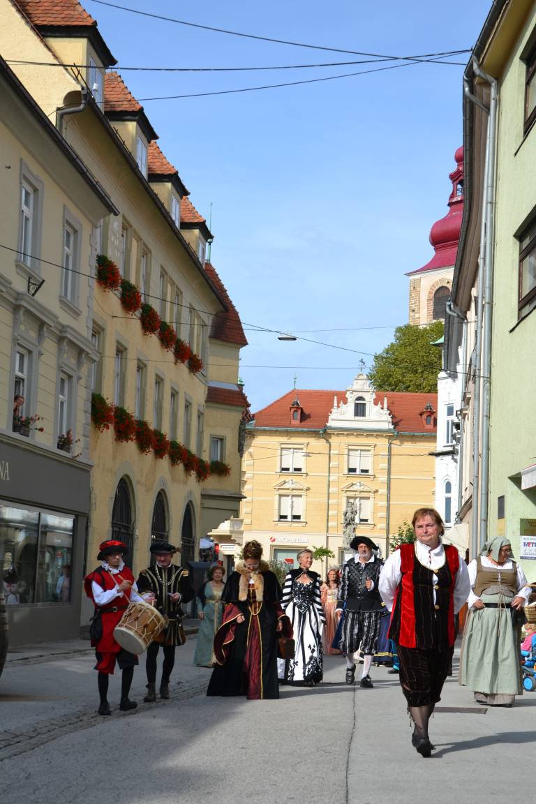 Po starem mestnem jedru so se tako sprehodili graščaki z bobnom, ki so opozarjali, da je Ptuj v srednjem veku dobil novo oblast ter kugo.