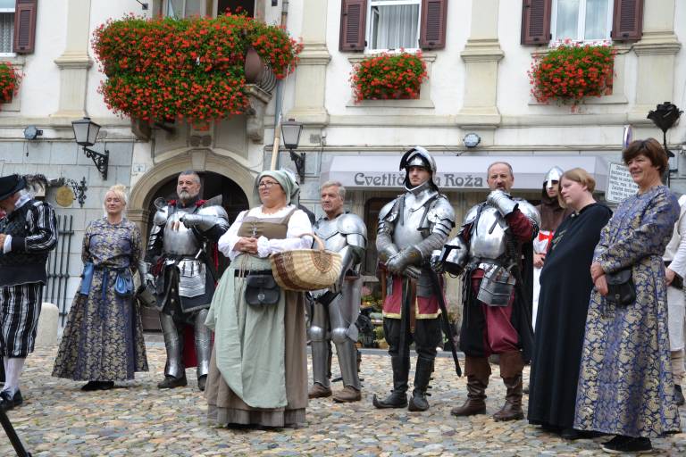 Graščaki so se nato odpravili na grad, kjer so prodajali na stojnicah, branjevka Urša Klepetulja pa je predstavila vse ptujske trače in zgodbe.