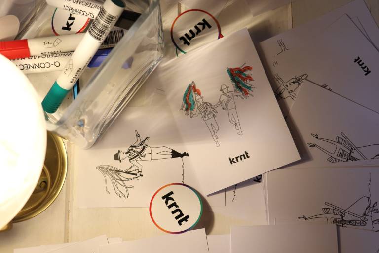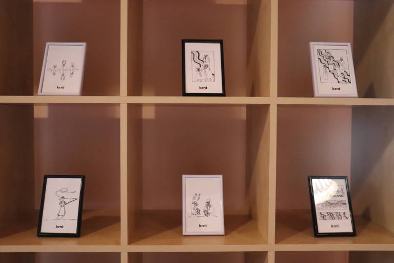 Tako si lahko v Kavarni Bodi ogledate razstavo KRNT, ki predstavlja izdelke in aktivnosti petih domačih ustvarjalk in ustvarjalcev.