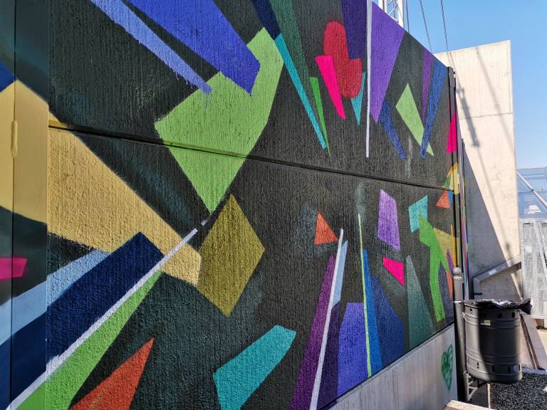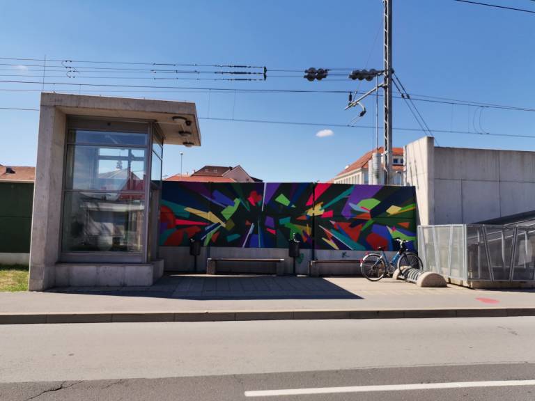Siva stena stena postaja živobarvna umetnina.