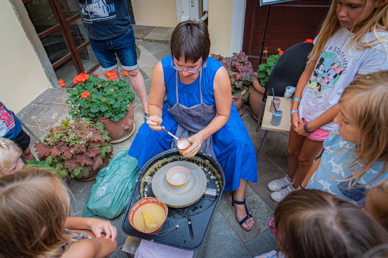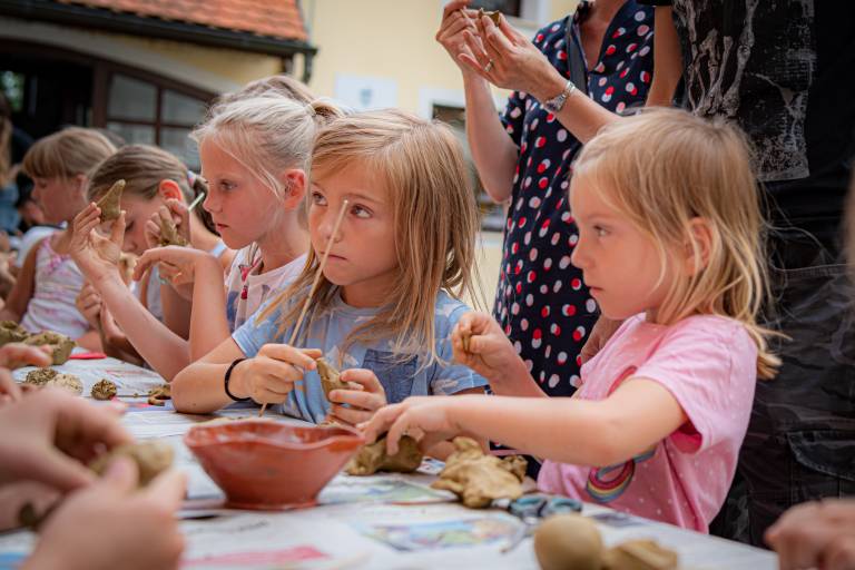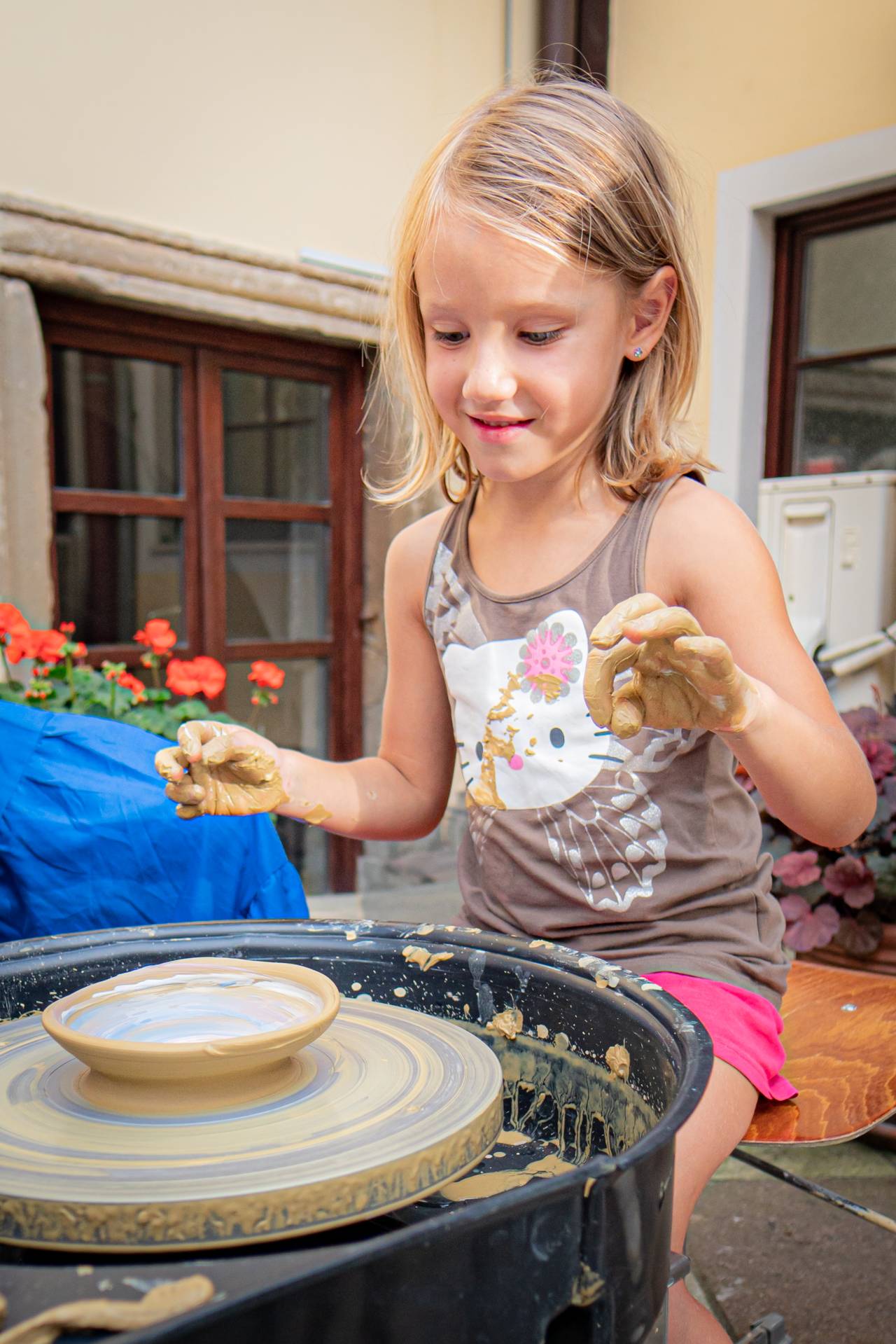 Temu so sledile delavnice pod vodstvom zavoda Marianum Veržej, kjer so otroci ustvarjali z glino in se preizkusili na lončarskem vretenu.