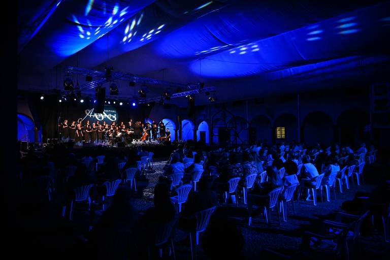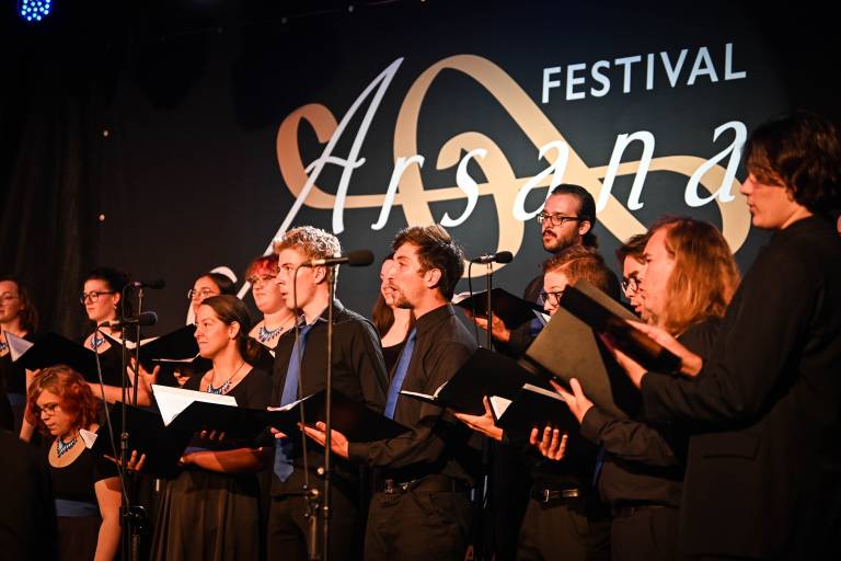 Dogajanje v sklopu ptujskega glasbenega festivala Arsana je bilo tudi včeraj pestro. Obiskovalci so na dvorišču Minoritskega samostana uživali v nastopu pevskega zbora Univerze na Primorskem, pridružili so se jim še Bedtime Story Strings.