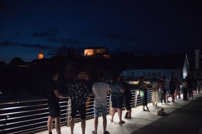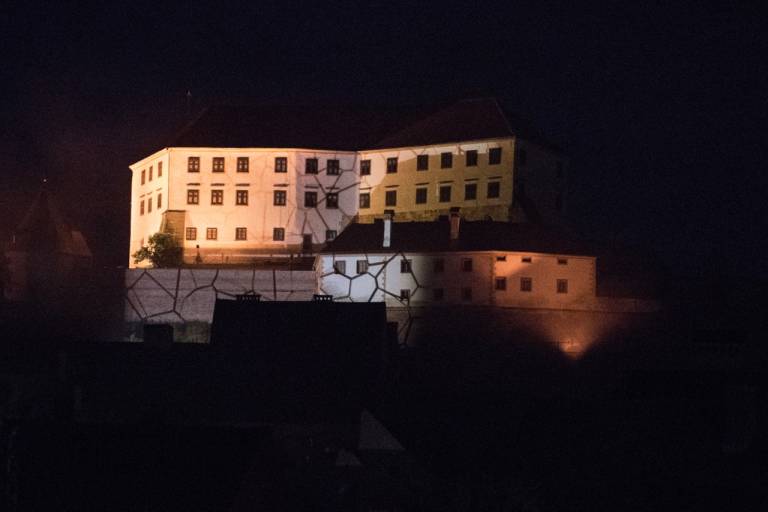 Ob 22.00 se je pa pričela prava drama. Projekcija ognjenih zubljev je zajela ptujski grad. Projekcija je potekala z Galerije mesta Ptuj.