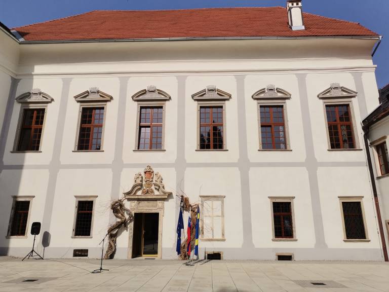 »Danes smo tukaj po petih, šestih letih, pred dobro polovico obnovljenega gradu, ki je imenitno obnovljen, opremljen, ne še v polni meri, ampak vendarle v taki, da lahko začne živeti,« je ob robu današnjega obiska dejal minister za kulturo Vasko Simoniti.