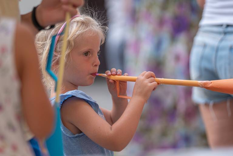 Otroci so raziskovali zvoke glasbil in kako jih glasba spremlja skozi življenje. Delavnica je bila prilagojena predšolskim otrokom in otrokom prve triade osnovne šole.