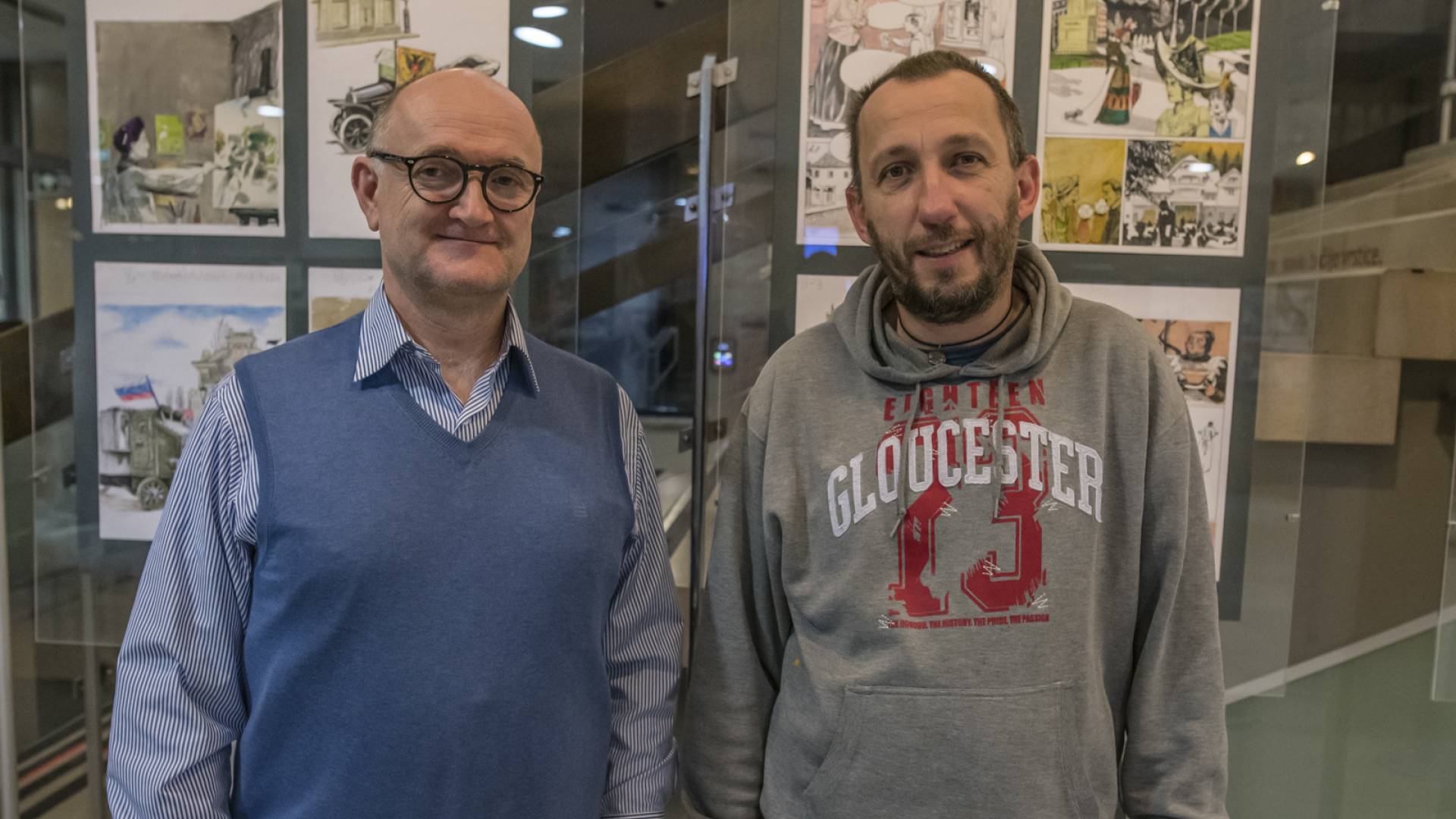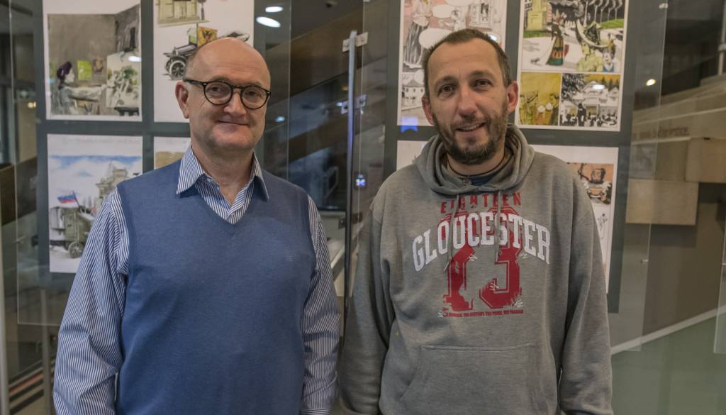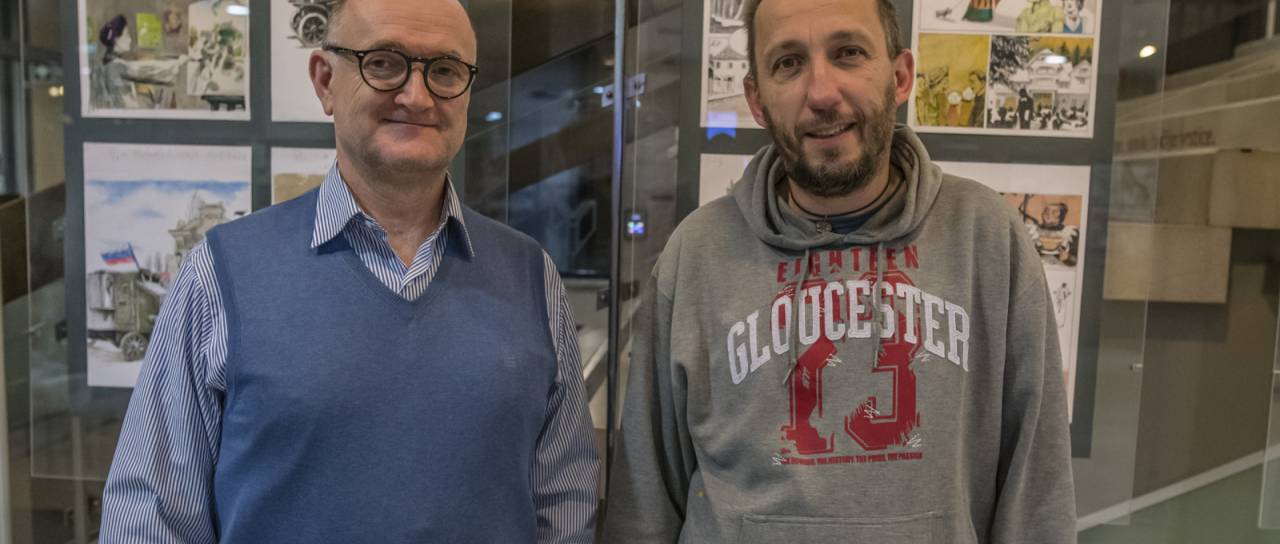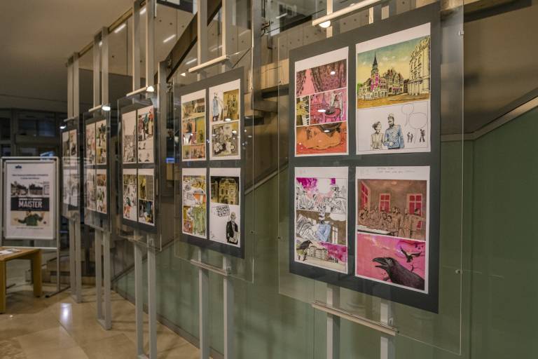 V Univerzitetni knjižnici Maribor so razstavili izbor ilustracij iz stripa Naš Maister ilustratorja, striparja in predavatelja na Akademija za likovno umetnost in oblikovanje v Ljubljani Damijana Stepančiča.
