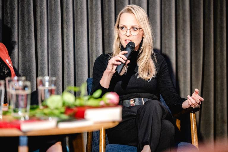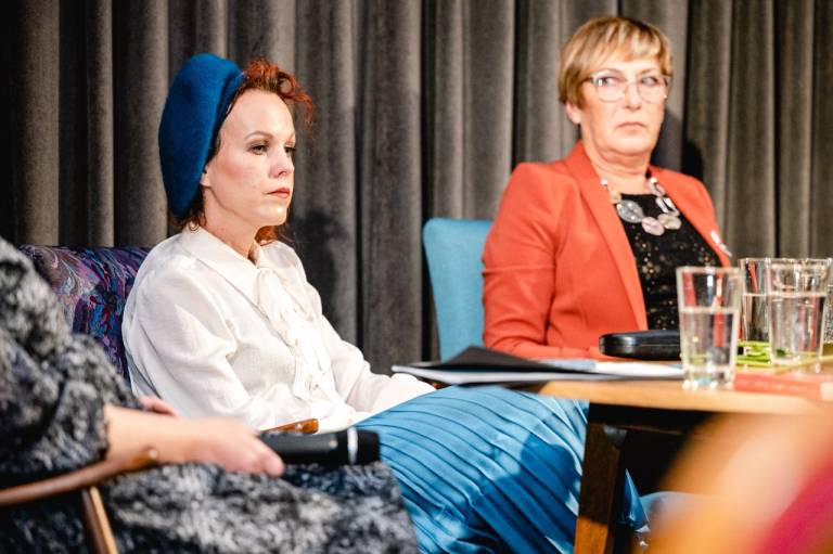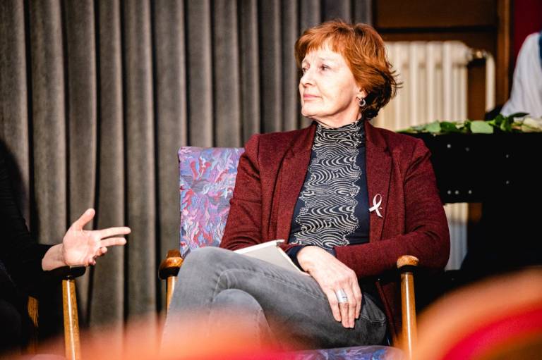 Po kratkem, a ganljivem filmu smo prisluhnili pogovoru Nine Koštomaj iz društva Ars Vitae, Ireni Toš Koren z Inštituta za družinsko in sistemsko psihoterapijo, Valerije Ilešič Toš in Jelke Ljubec iz Centra za socialno delo Spodnje Podravje ter Glorjane Veber, raziskovalke duhovnosti in pesnice.