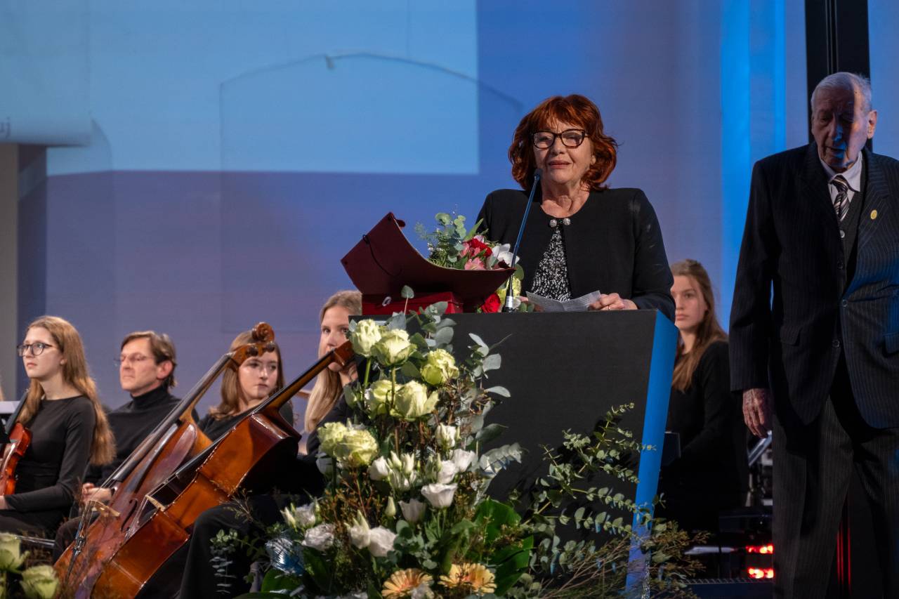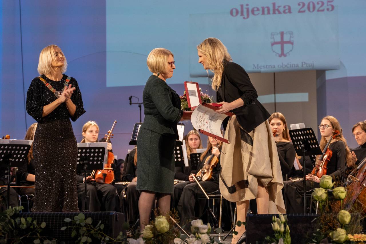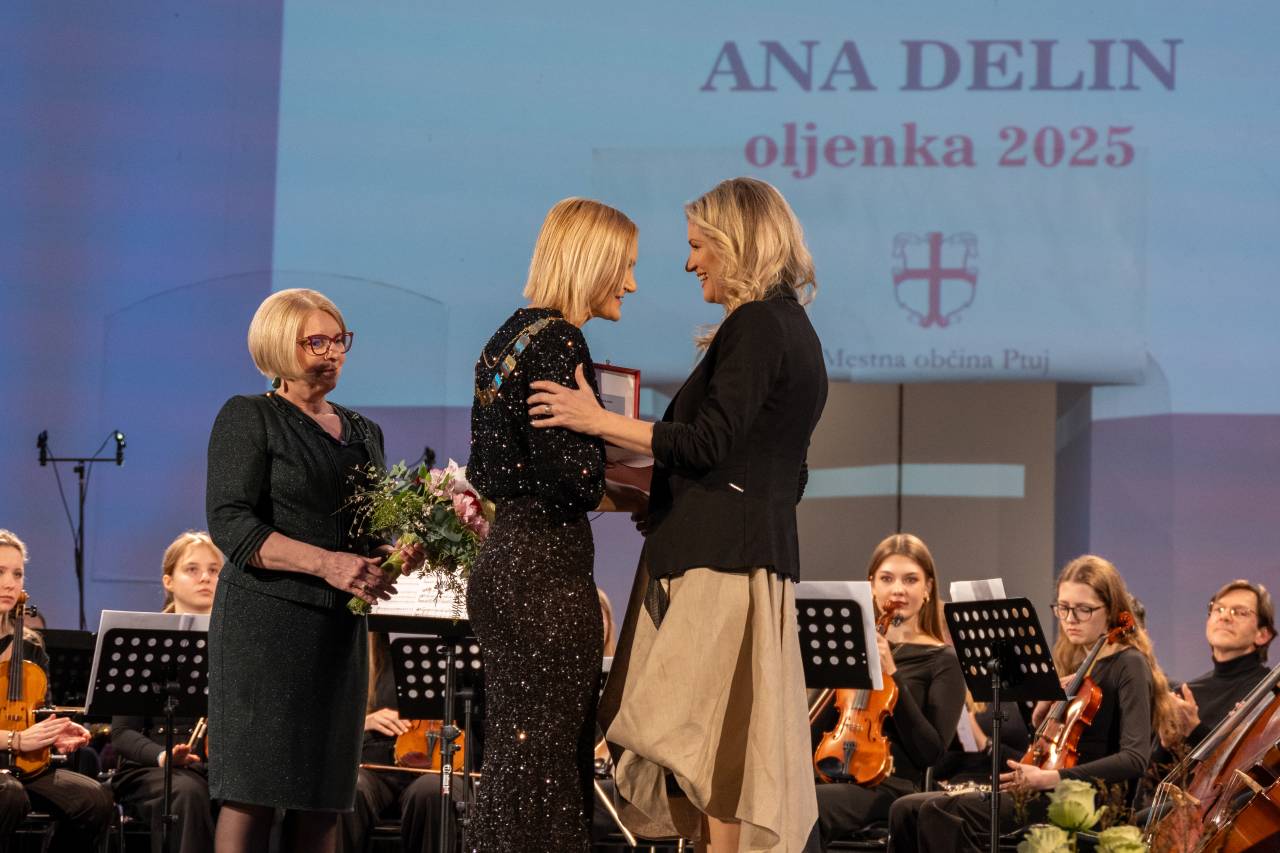 Na drugi strani so priznanje oljenka podelili Ani Delin, vokalistki, pedagoginji, producentki in specialistki glasbene terapije, za dolgoletne uspehe na področju umetniškega in pedagoškega delovanja.