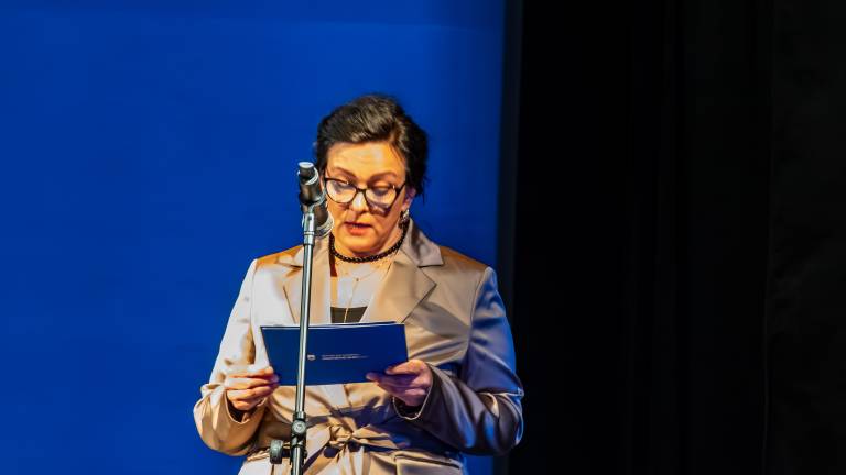 Današnje slovesnosti ob okroglem jubileju se je kot osrednja govornica udeležila generalna direktorica direktorata za umetnost na ministrstvu za kulturo Barbara Koželj Podlogar.