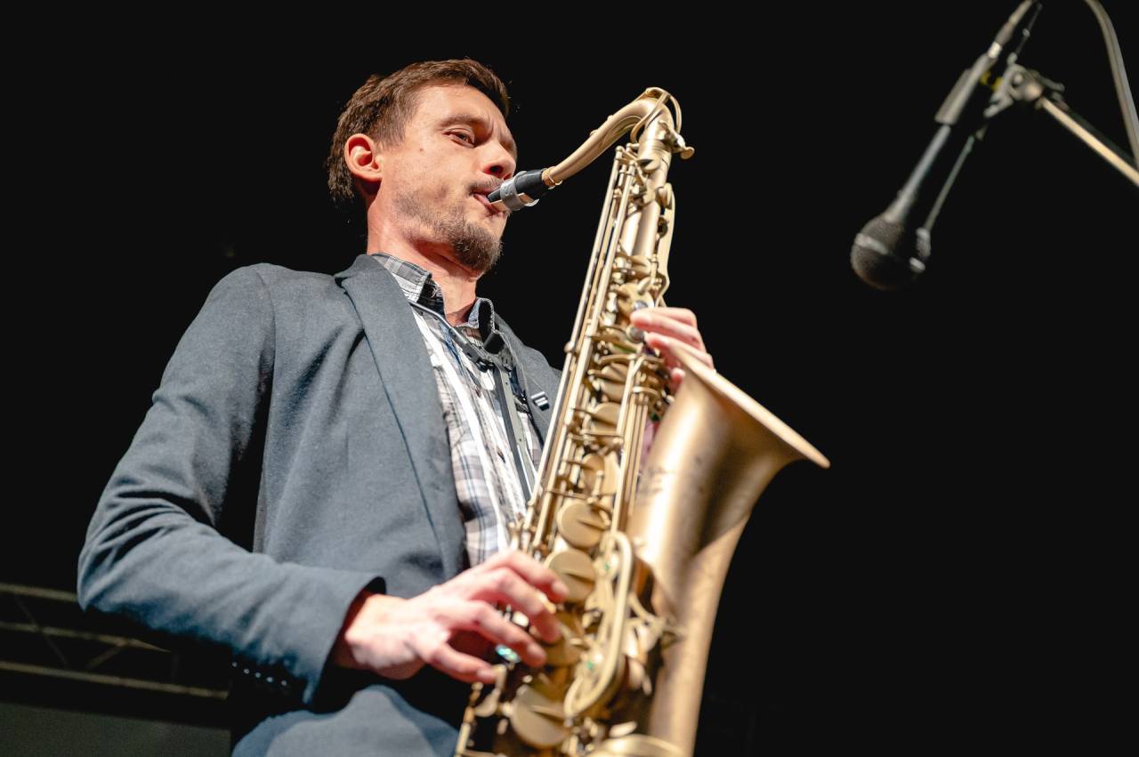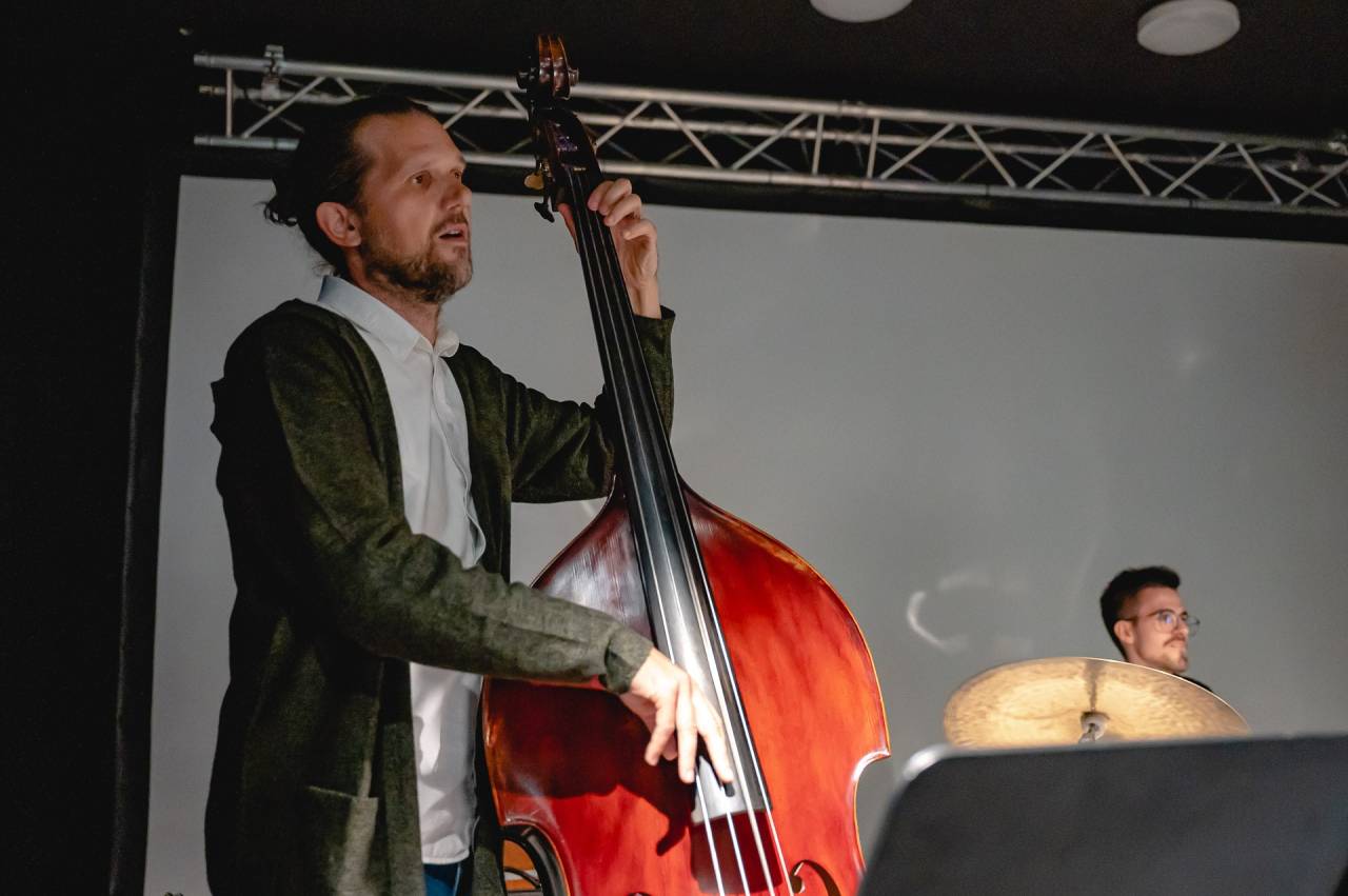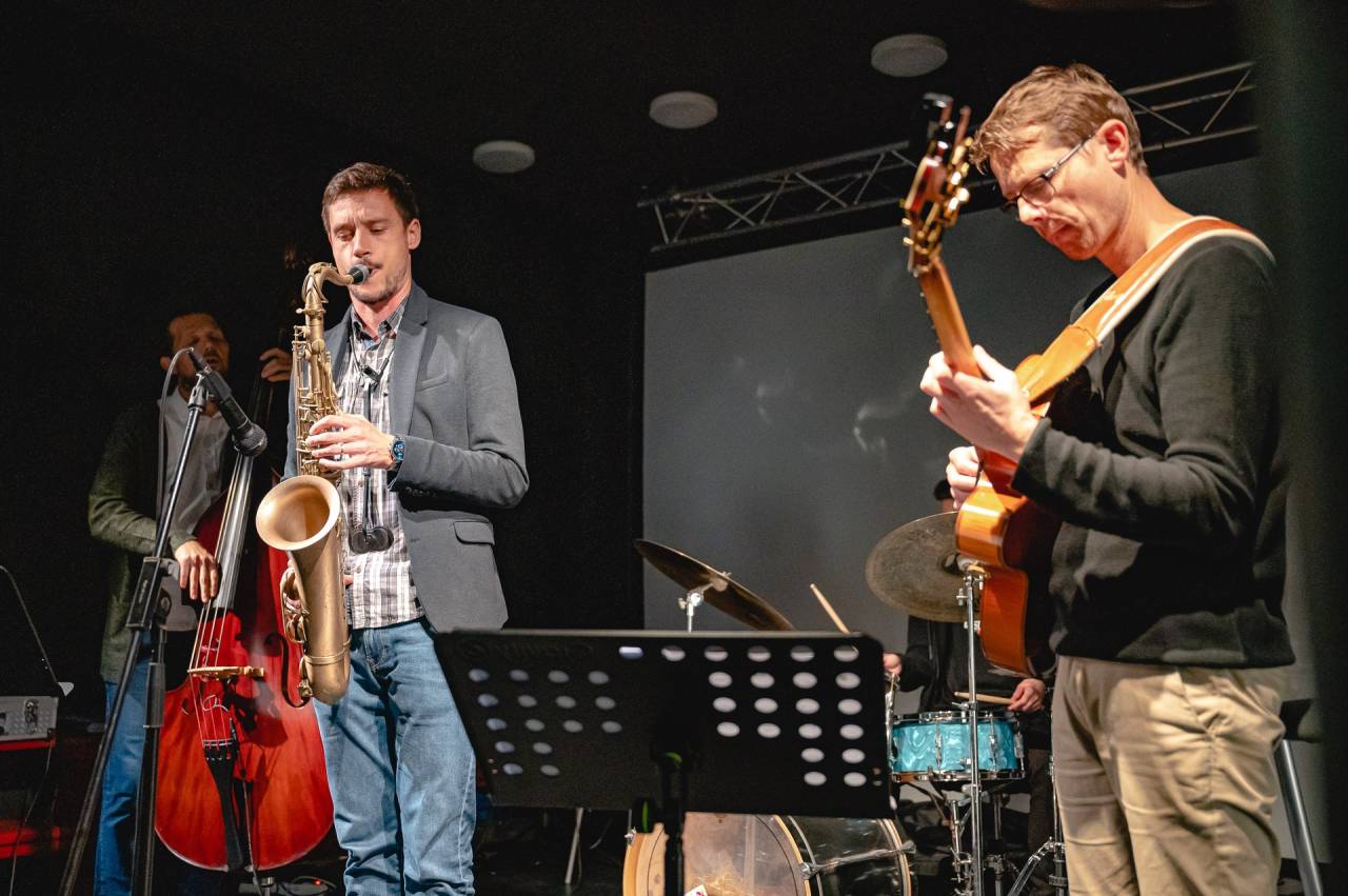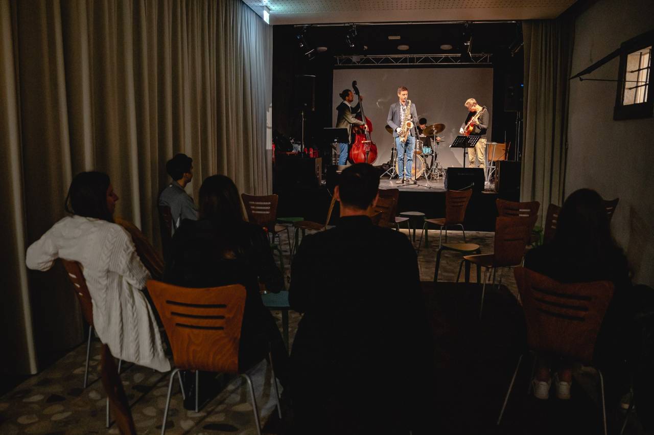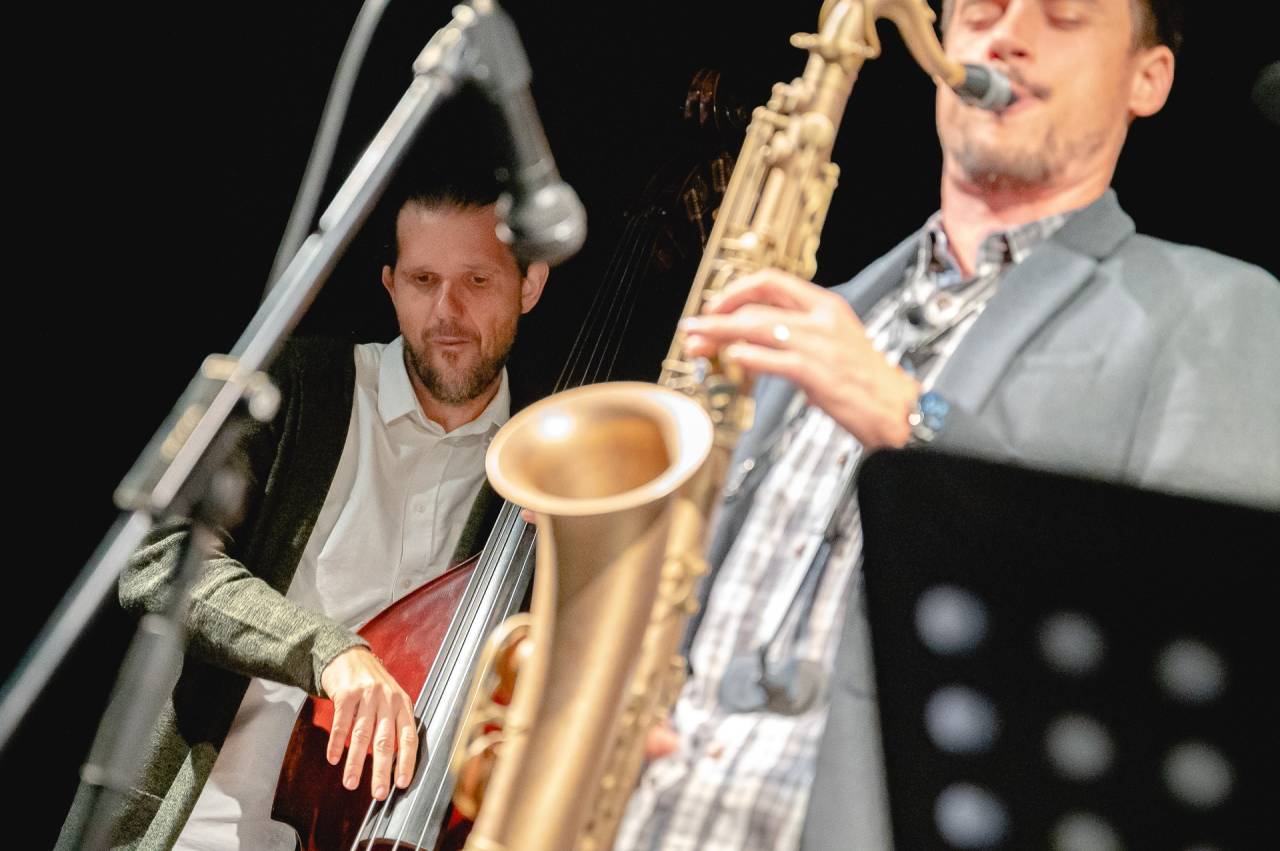 Slednji zvrsti smo prisluhnili tudi včeraj – ob 20. uri so malo dvorano Stare steklarske zajeli glasbeni valovi Rusty jazz kvarteta pod vodstvom Marka Korošca (kontrabas). Poleg njega so igrali Jaka Ahačevčič (saksofon), Stane Hebar (kitara) in Niko Kostanjevec (bobni).