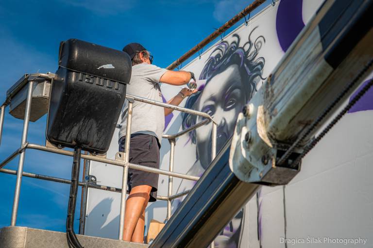 Ves dan je bilo na delu mogoče opazovati umetnika Aleksandra Fenosa, ki je po hipnem navdihu ustvarjal največji grafit v mestu, meri štiri metre v dolžino in pet metrov v višino.