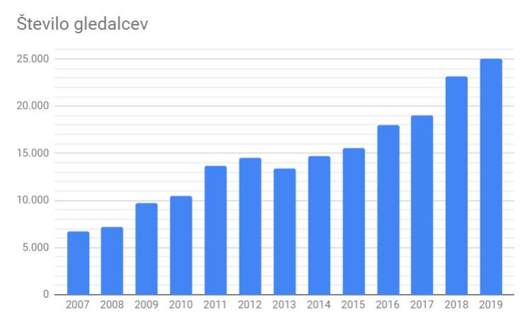 Število obiskovalcev filmskih projekcij je znašalo 25.064, kar je za osem odstotkov več kot leto prej.
