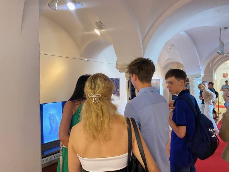 Zbrani so si nato z zanimanjem ogledali razstavo mladih umetnikov.