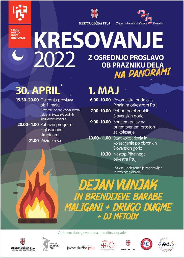 Osrednja proslava ob 1. maju, prazniku dela, bo na parkirišču pod grajskim hribom v soboto, 30. aprila 2022, ob 19.30. Sledilo bo kresovanje in druženje ob zabavnem programu.