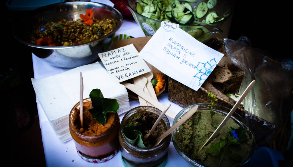 Na zelenem vrtu Doma kulture muziKafe se je v soboto, 21. julija, odvijal že sedmi vegetarijanski bazar. Tudi tokrat ni manjkalo okusnih jedi lokalne pridelave, ki so jih pripravile smele prostovoljke in prostovoljci društva, ter še 25 posameznikov, društev in organizacij, ki radi pomagajo.