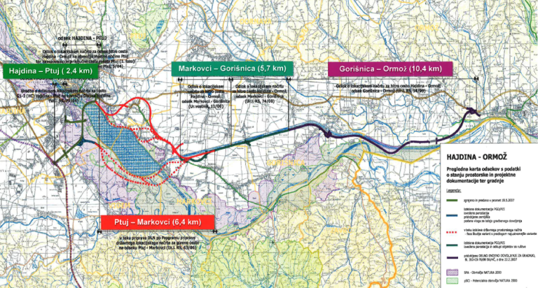 Trasa na odseku Ptuj–Markovci še edina ni umeščena v prostor, v izdelavi je študija variant/predinvesticijska zasnova oziroma utemeljitev rešitve.