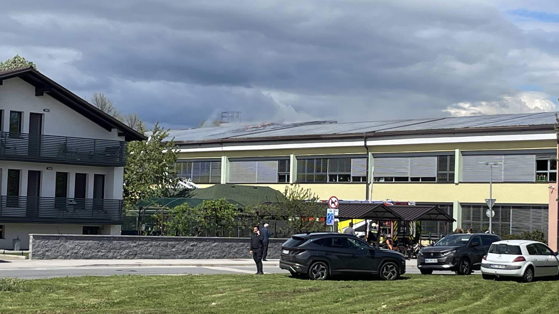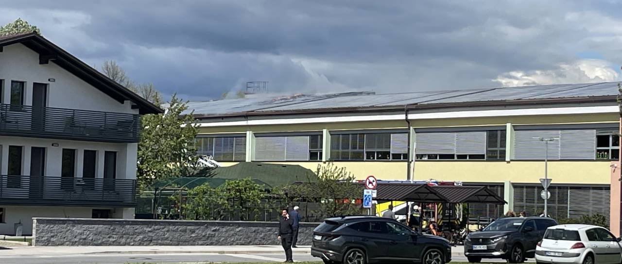 Zagorelo na strehi pomurske osnovne šole, ogenj zajel sončne kolektorje.