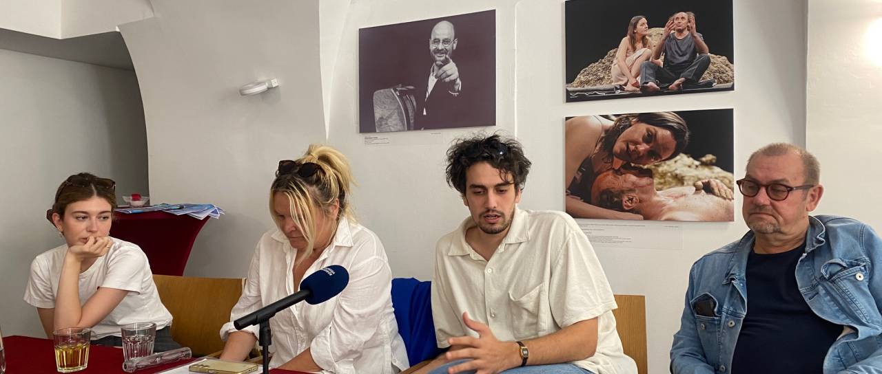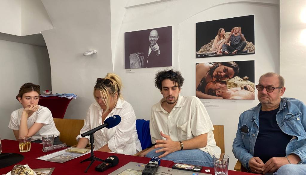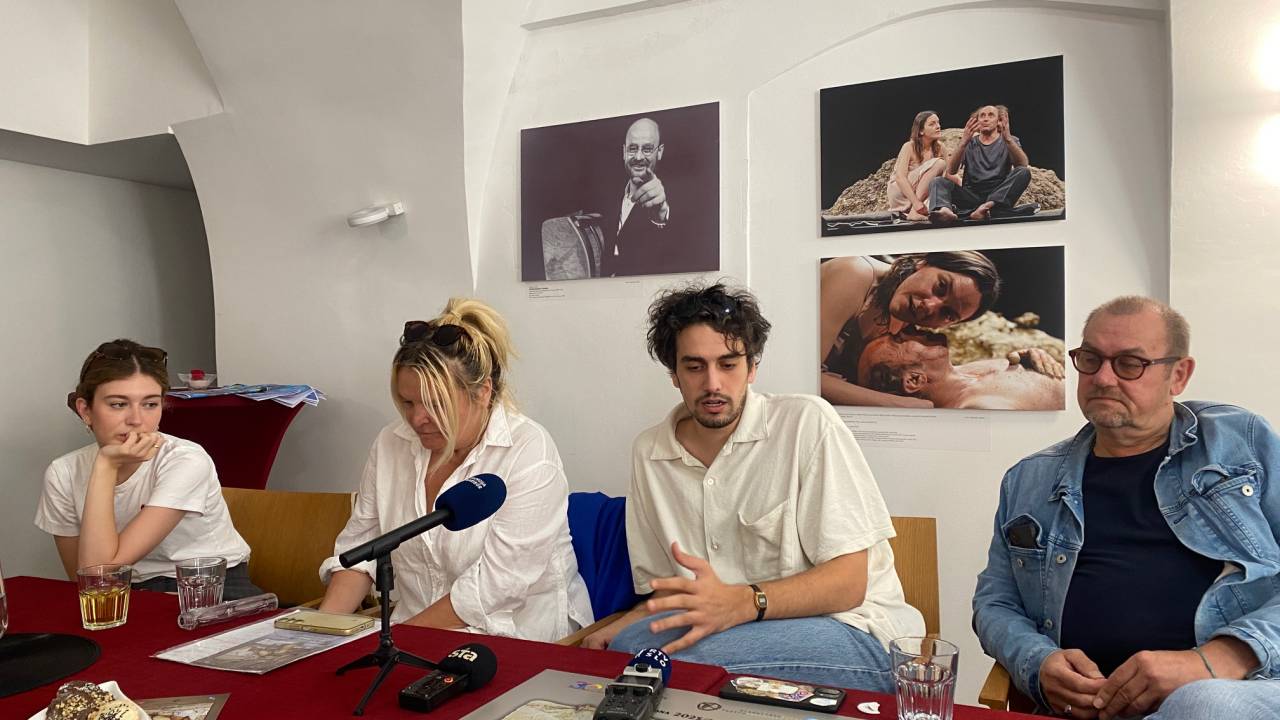 Današnje novinarske konference na Ptuju so se udeležili direktorica Gledališča Koper Katja Pegan, ki je predstavo dramatizirala in režirala, igralci Mak Tepšić, Franko Korošec in Mila Peršin ter pianist Robert Vatovec.