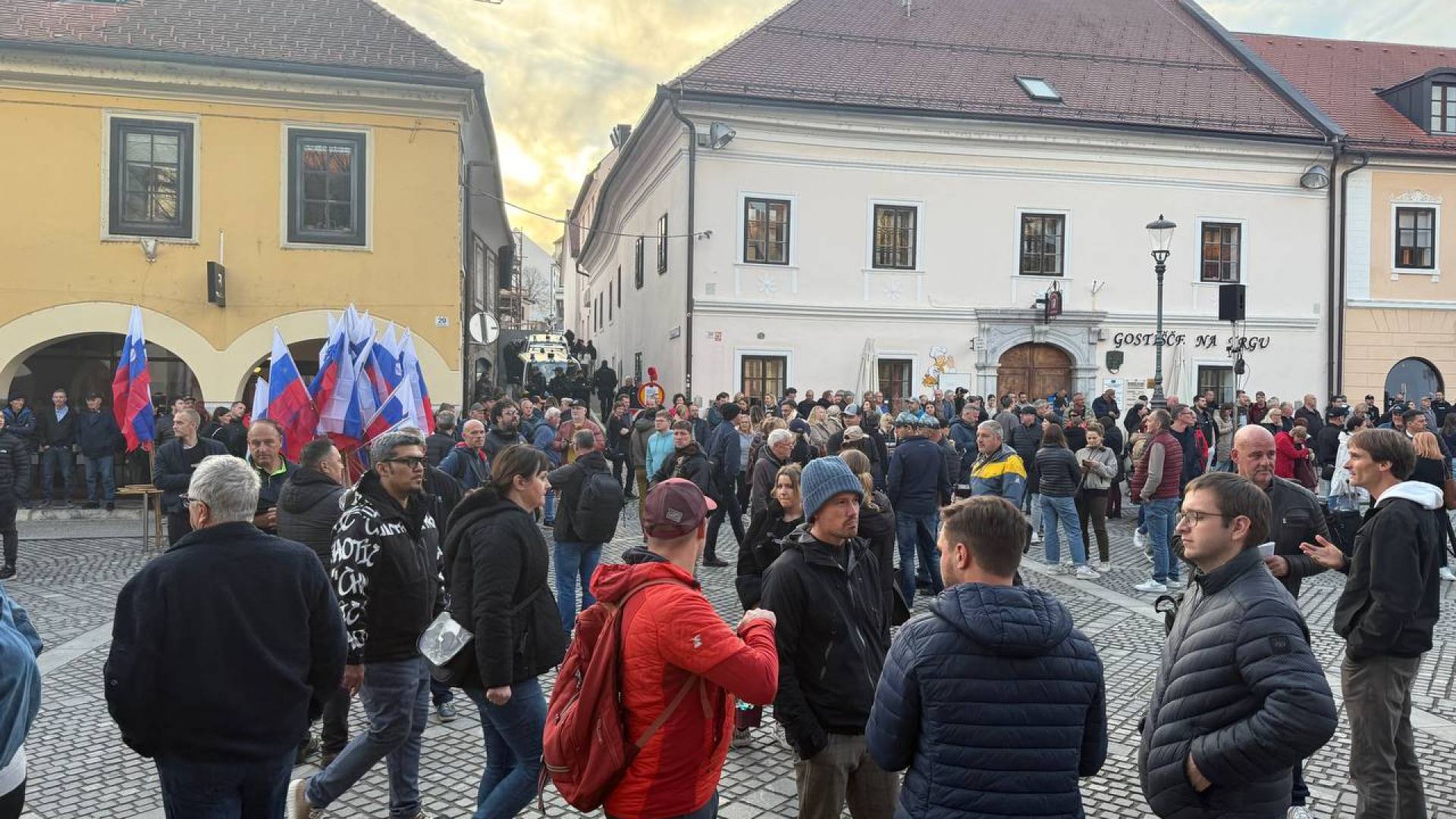 15.54 Medtem so v mestu okrepljene policijske patrulje, na trgu pa potekajo zadnje priprave na protest.