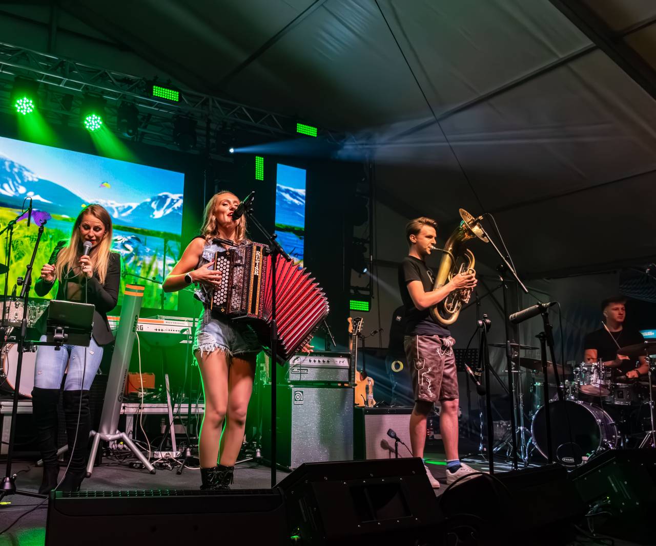 Pod velikim prireditvenim šotorom na nogometnem igrišču se je sinoči zbrala množica obiskovalcev, ki so uživali v pestrem glasbenem programu.