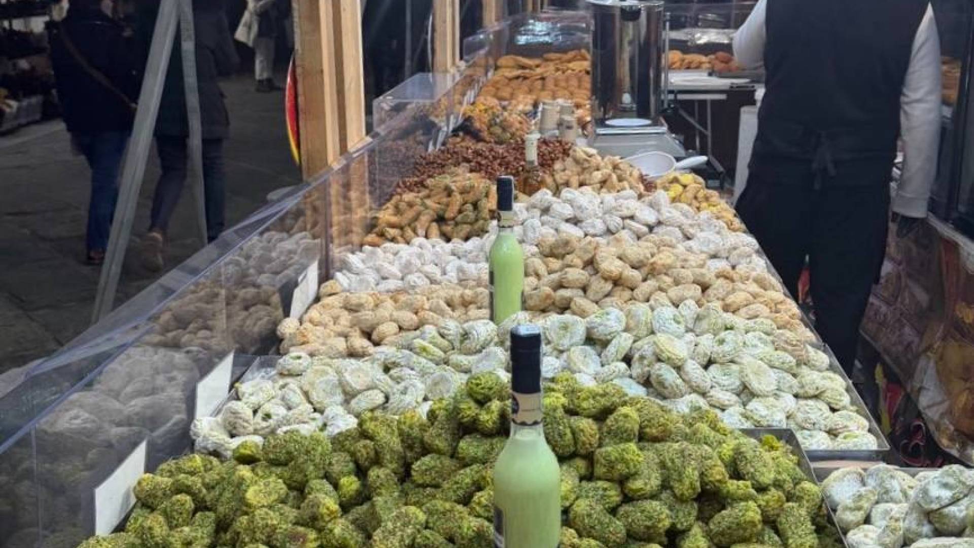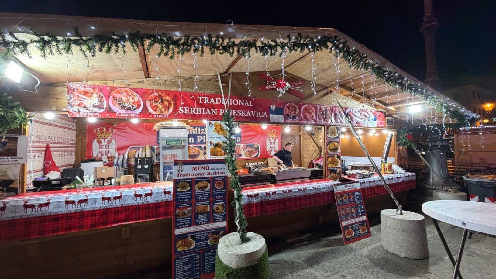 Poglejmo še cene kulinaričnega dela stojnic: kilogram toskanske porchette je 38 evrov, sendvič s porchetto osem evrov, mešana solata pet evrov, pivo stane med štiri in pet evri, voda 1,50 evra, kozarec vina tri evre, kuhano vino pa med tremi in petimi evri, odvisno od velikosti. To so cene, ki so primerljive s tistimi v praznični Ljubljani.