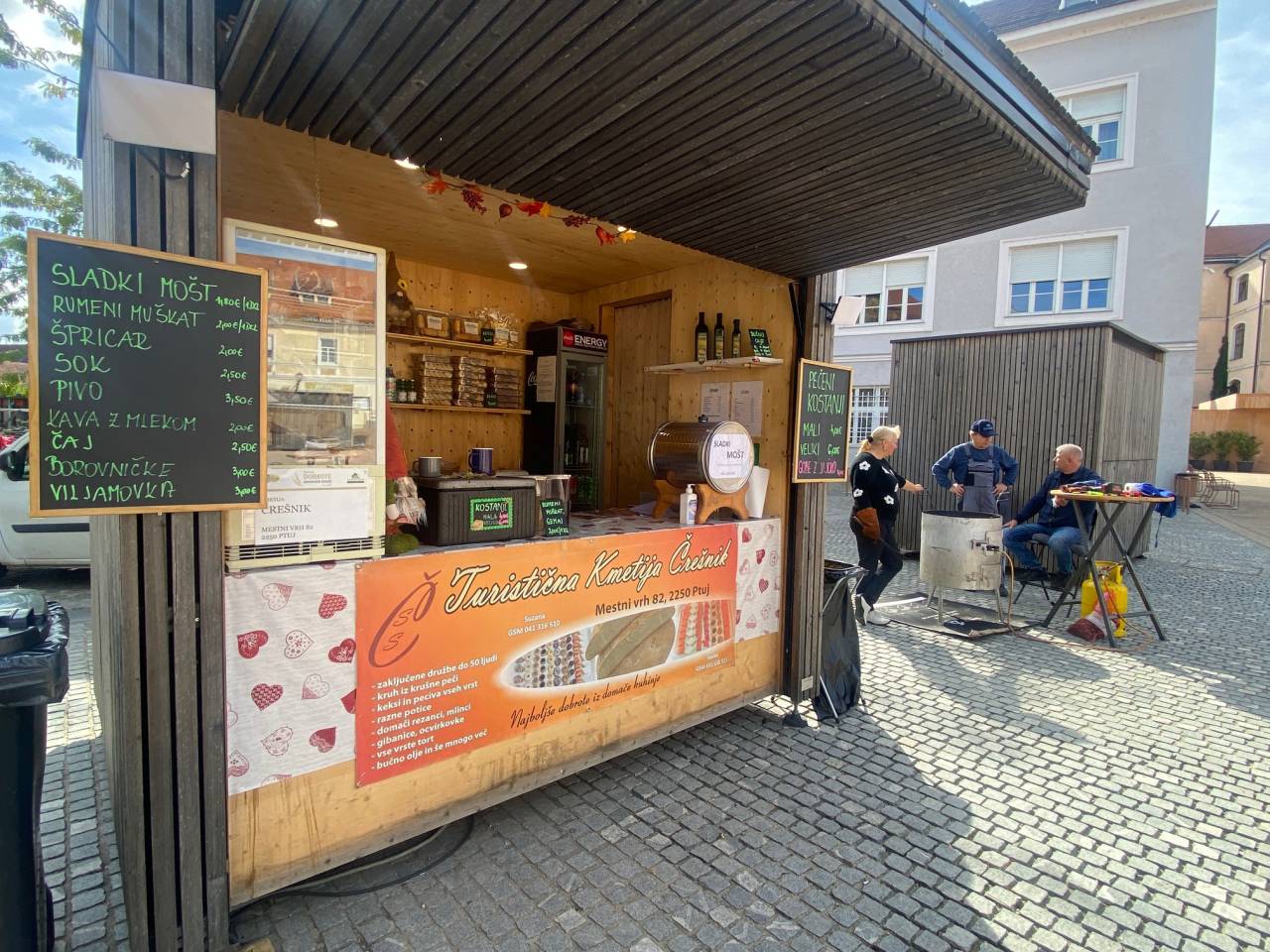 Na ptujski mestni tržnici je Turistična kmetija Črešnik pričela s peko kostanja in prodajo drugih dobrot.