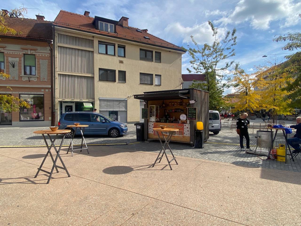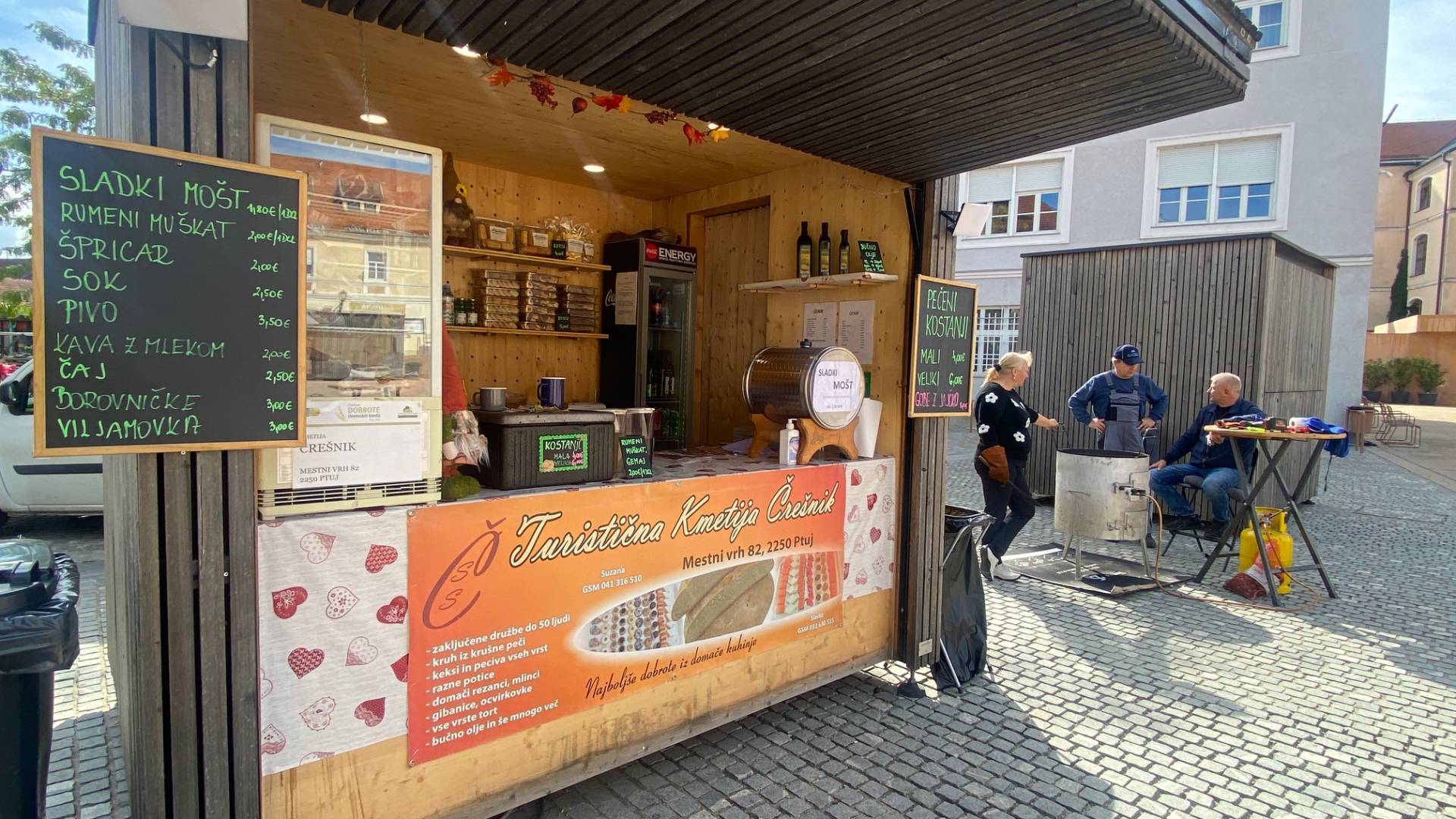 Danes sta zakonca, Alojz in Suzana Črešnik s Turistične kmetije Črešnik, začela s peko kostanja, na njuni stojnici pa najdete tudi sladki mošt, mesne izdelke Turistične kmetije Črešnik, kekse, njihove domače testenine in druge dobrote.