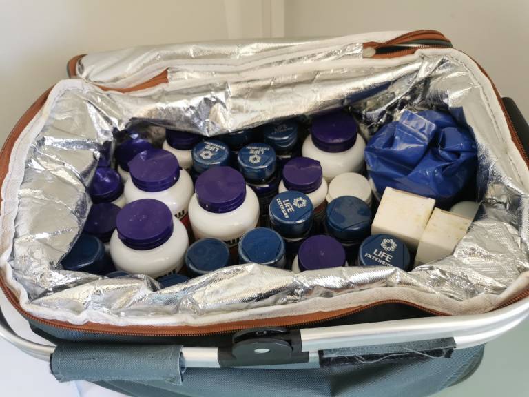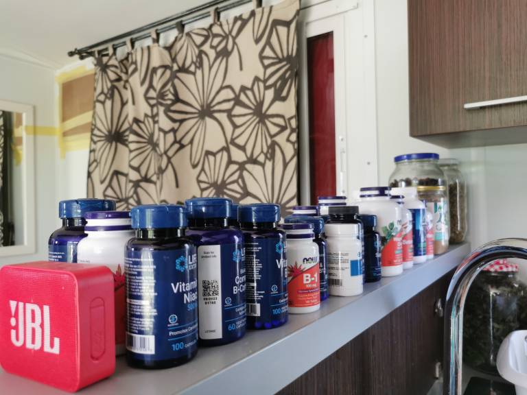 »Merilo je na primer, če ne jemlje zdravil. Kakšno vezo ima to? Če ne jemlje zdravil, dobi manj točk,« pravi Barbara in pokaže vse suplementacije, ki jih namesto zdravil mora jemati Nejc. Vse financira družina sama.