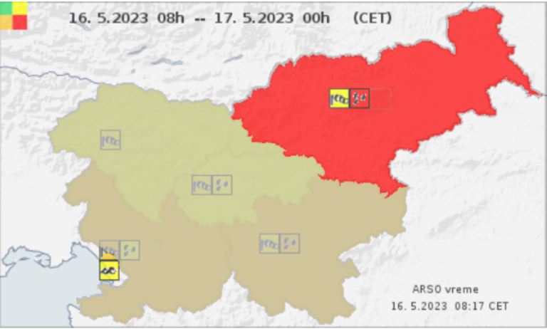 Agencija Republike Slovenije za okolje je zaradi povečane količine padavin za severovzhod države izdala rdeče opozorilo.