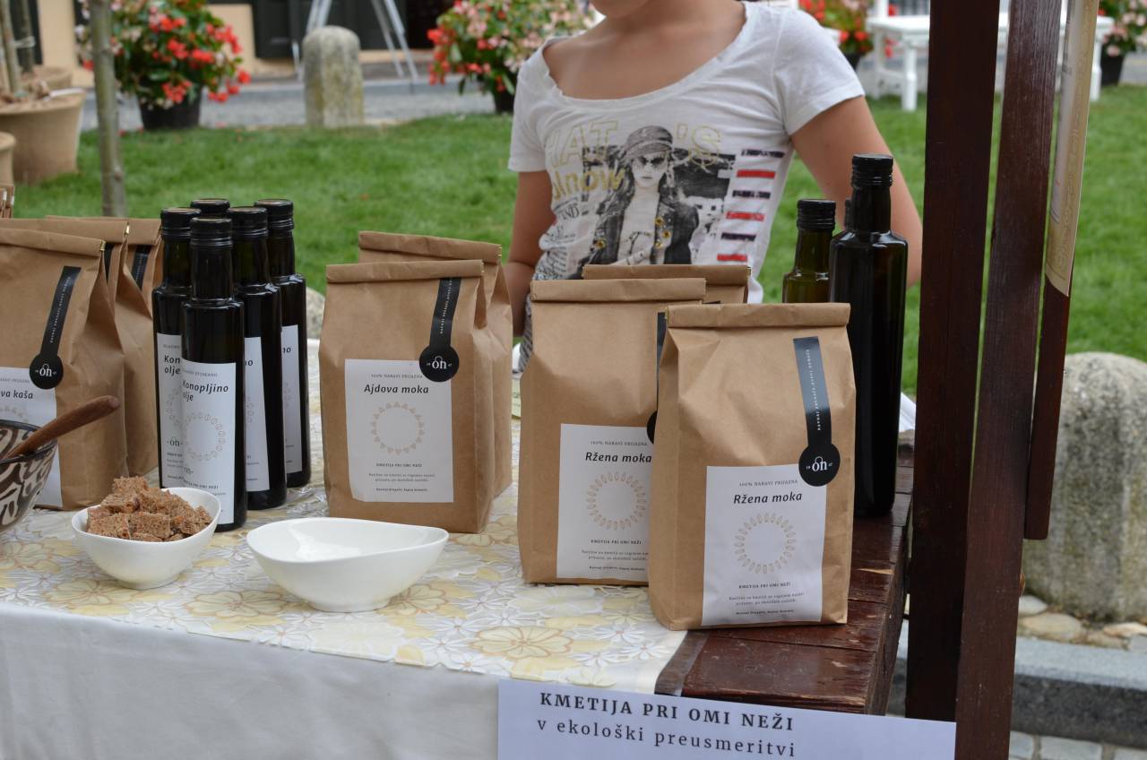 Maja iz Kmetije pri omi Neži, ki je usmerjena v ekološko pridelavo, je na stojnici predstavljala različne moke in olja. Kot je povedala, na kmetiji gojijo buče, sončnice, ajdo, konopljo, piro, rž … Olja so tudi preverjene kakovosti in nagrajena. V nadaljevanju pa se želijo razviti tudi v izobraževalno kmetijo, sodelovati s šolami in jim ponujati različne delavnice.