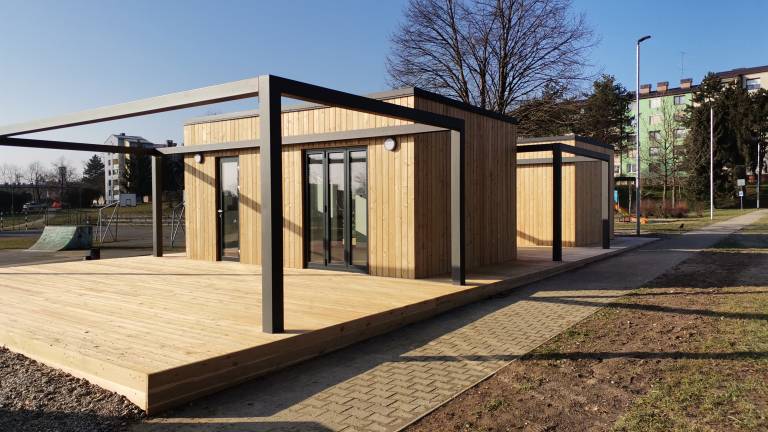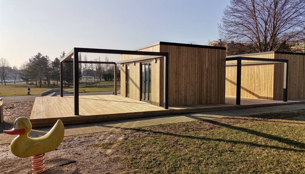 Postavljena sta dva objekta z leseno teraso. S tem je občina želela obogatiti nabor dejavnosti na tem območju. Obenem pa so vzpostavili tudi dostop do javnih sanitarij, ki so bile v parku nujno potrebne.