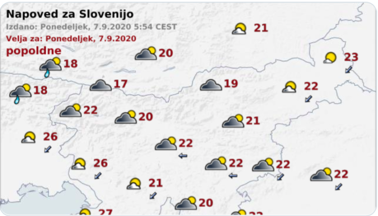 Popoldne se bo delno zjasnilo. Pihal bo severovzhodni veter. Najvišje dnevne temperature bodo od 17 do 22, na Primorskem do 27 stopinj Celzija.