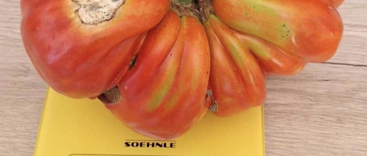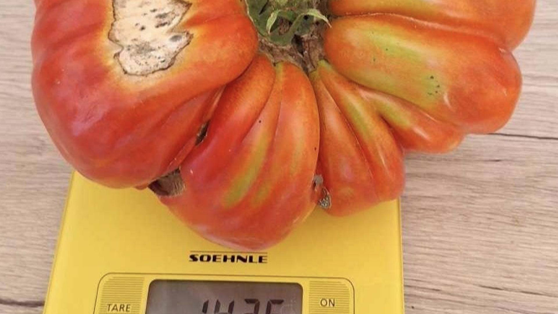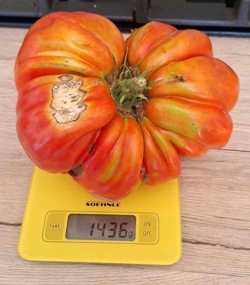 Ta orjaški paradižnik tehta kar 1436 gramov - torej skoraj kilogram in pol!