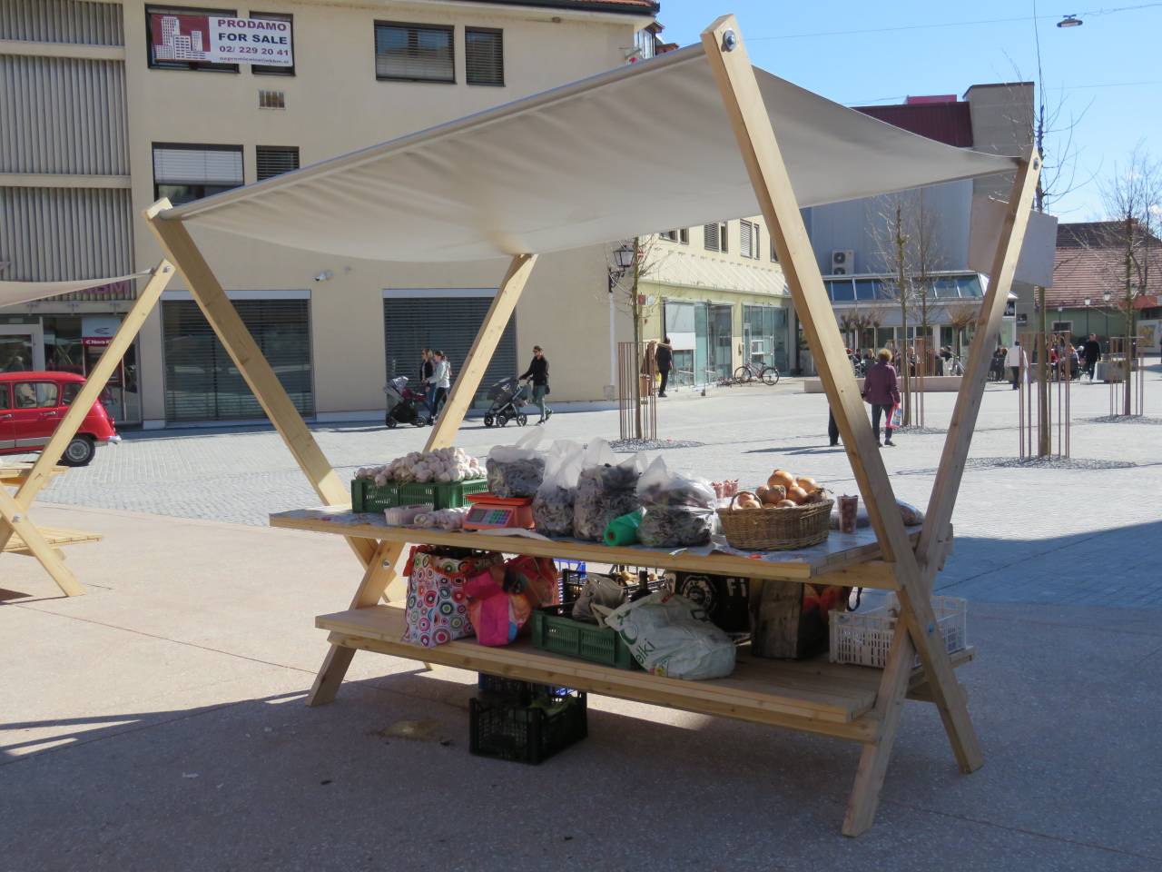 Projektanti so zanje predvideli pokrit prostor pod betonskim platojem pri cerkvi svetega Jurija, kjer bi bili tako kupci kot prodajalke vsaj deloma zaščiteni pred neugodnimi vremenskimi razmerami.
