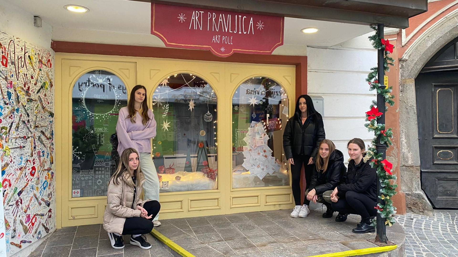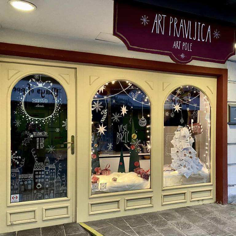 Svoje izložbe pa so čedno okrasile tudi trgovine, saloni, lokali in društva po mestu. Piko na i k čarobnemu sprehodu po mestu doda tudi izložba Art umetniškega ateljeja. Čudovito okrašena izložba navdušuje mimoidoče in v ta praznični čas prinaša kanček pravljice.