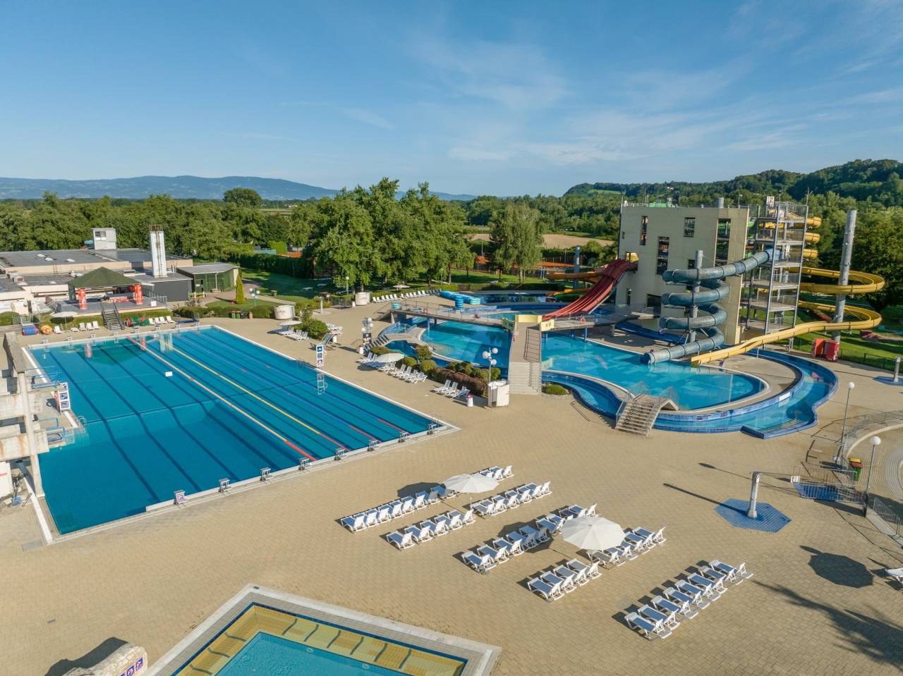 Termalni park Terme Ptuj ponuja kar 4200 kvadratnih metrov plavalnih površin. Osvežite se lahko v sedmih zunanjih in sedmih notranjih bazenih. Ponuja tudi osem zunanjih toboganov in enega notranjega.