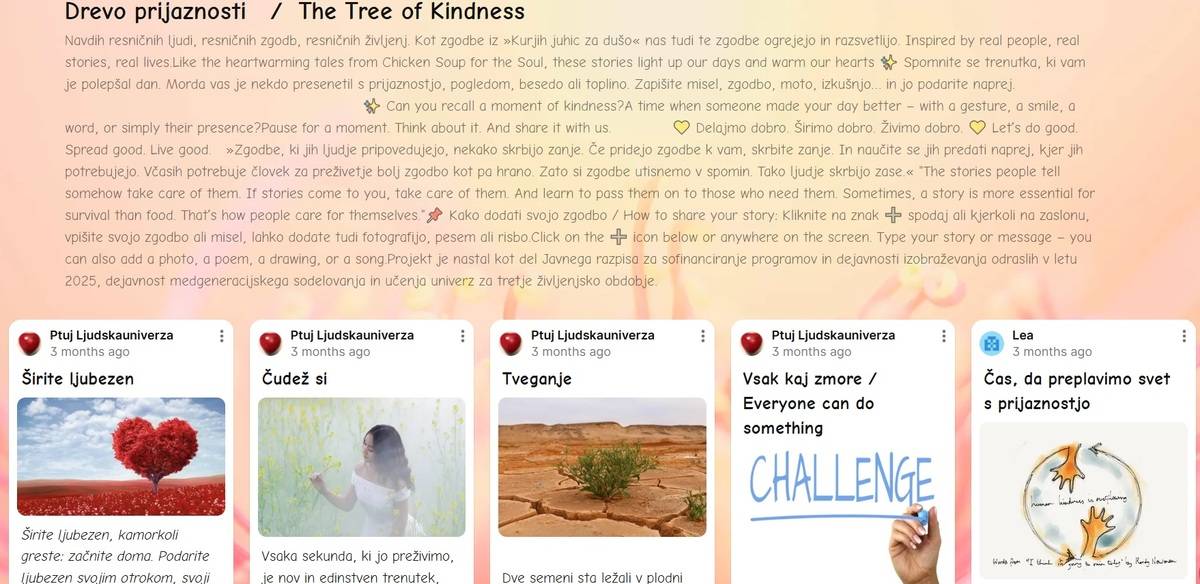 »Drevo prijaznosti najdete na naših hodnikih, kjer s klikom na črtno kodo podelite svojo zgodbo, izkušnjo ali misel, ki vas navdihne. Vse to lahko delite tudi anonimno,« so dejali na ptujski Ljudski univerzi in dodali, da zbirajo motivacijske, navdihujoče in prijazne zgodbe.