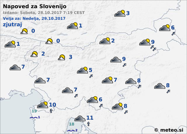 Sicer se nam jutri obeta kislo vreme. Jutranje temperature se bodo v Podravju gibale okrog 9 ºC, popoldanske pa okoli 13 ºC. Močan veter bo občutek hladnega vremena še dodatno okrepil. Obetamo si lahko tudi nekaj padavin.